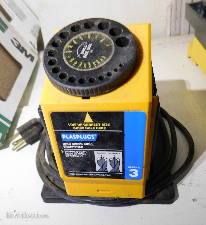 PlasPlugs High Speed Drill Bit Sharpener. Turns on.