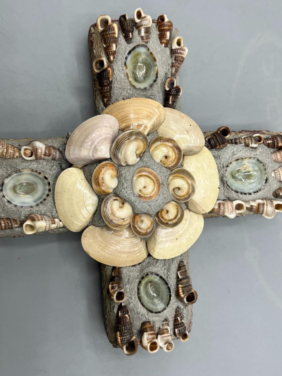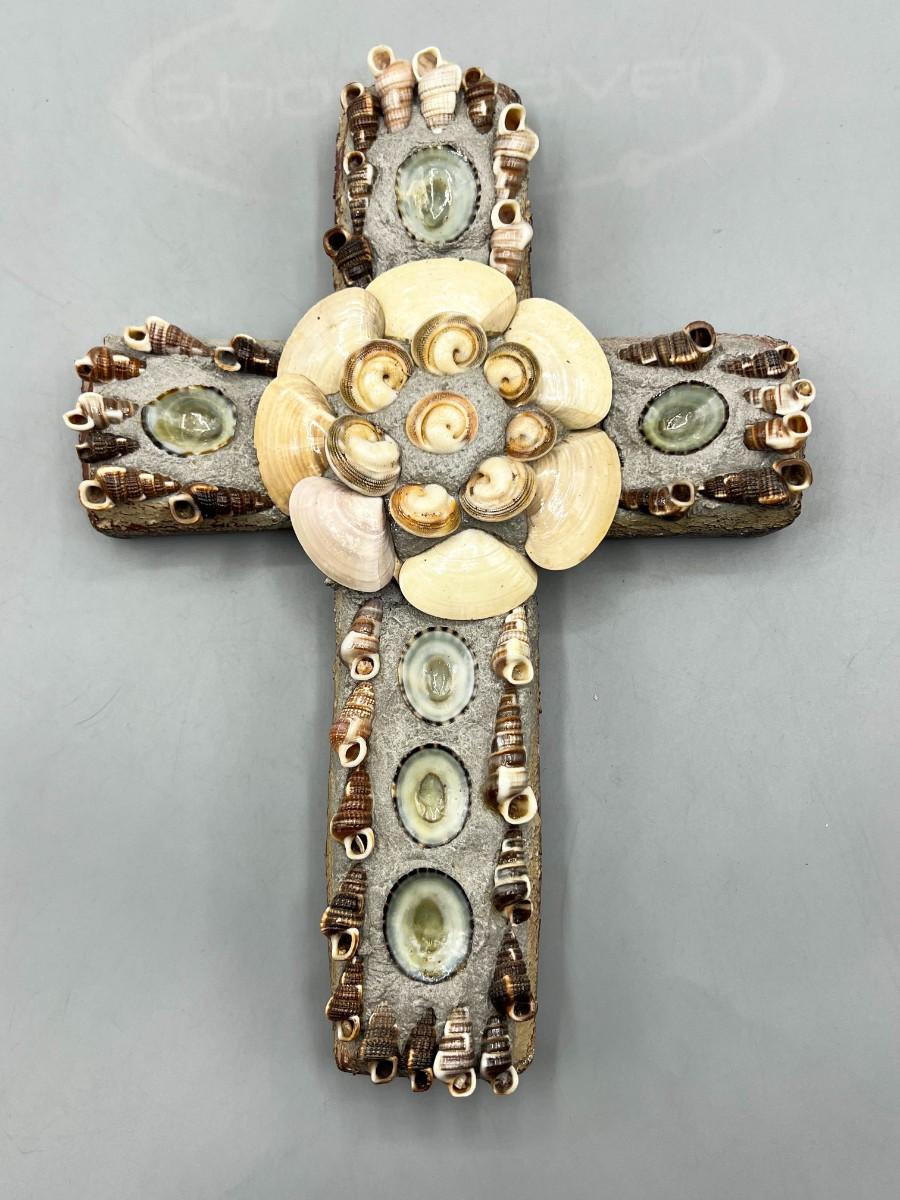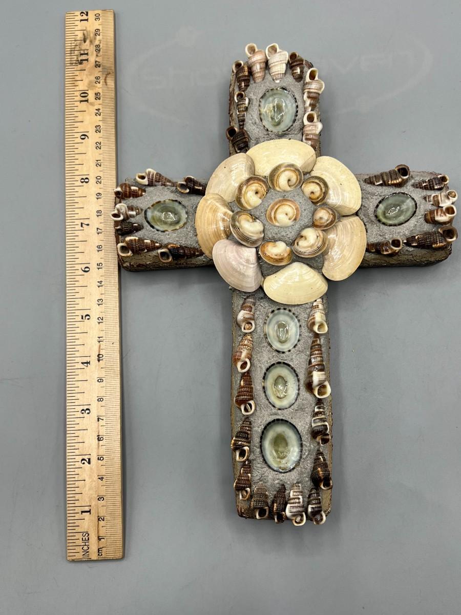 Plaster Seashell Nautical Religious Wall Hanging Decor Cross