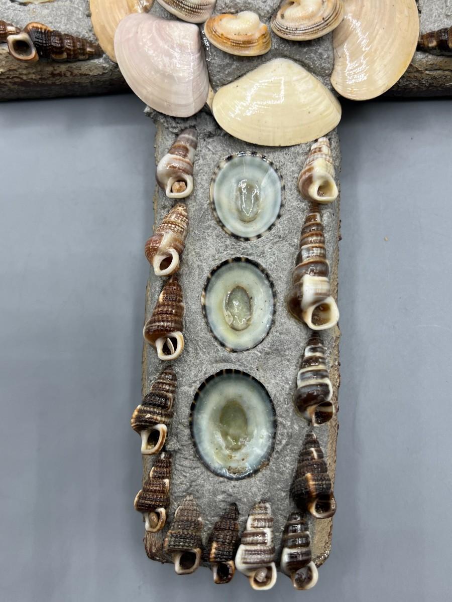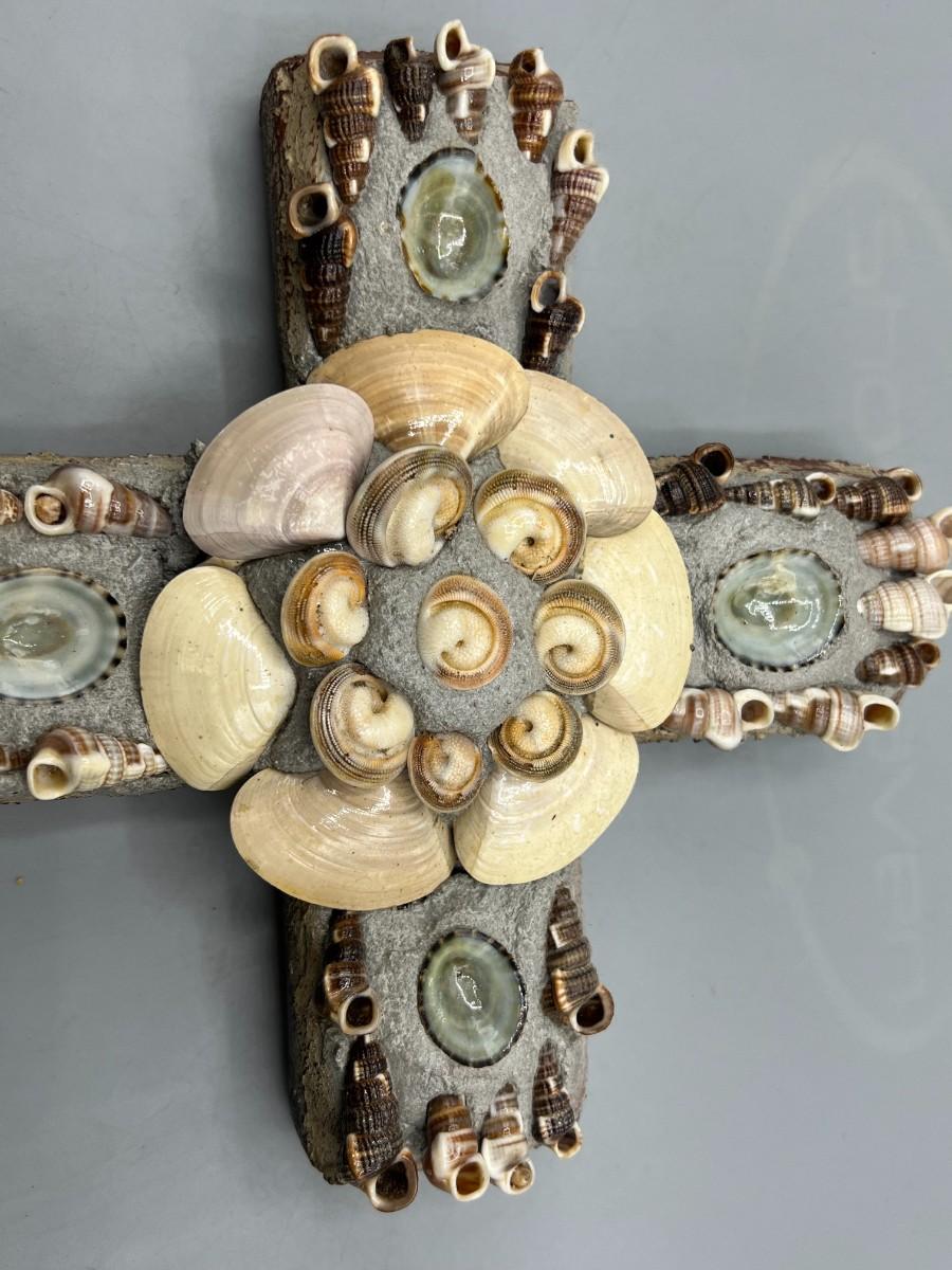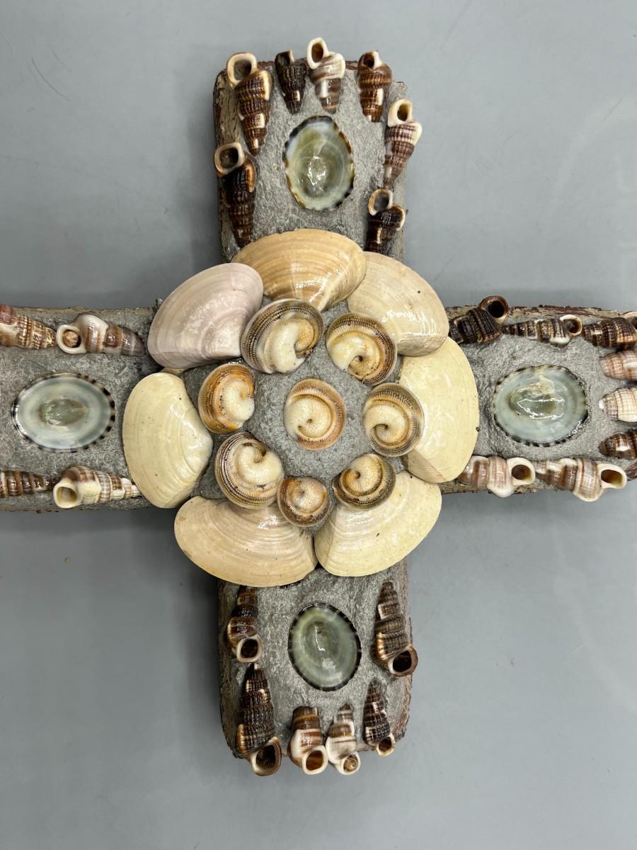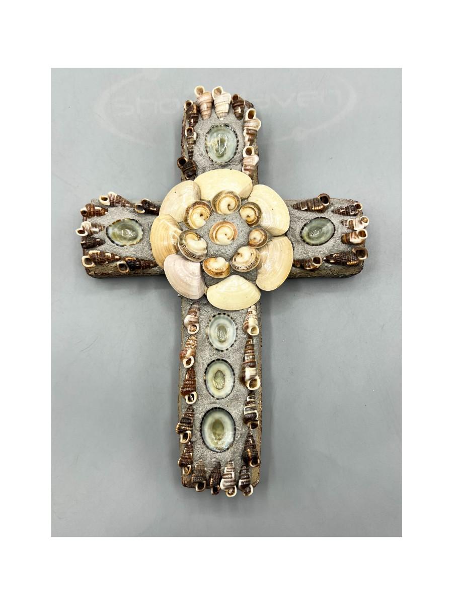 Plaster Seashell Nautical Religious Wall Hanging Decor Cross