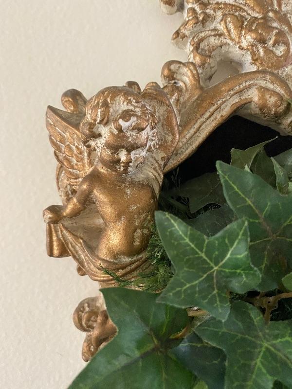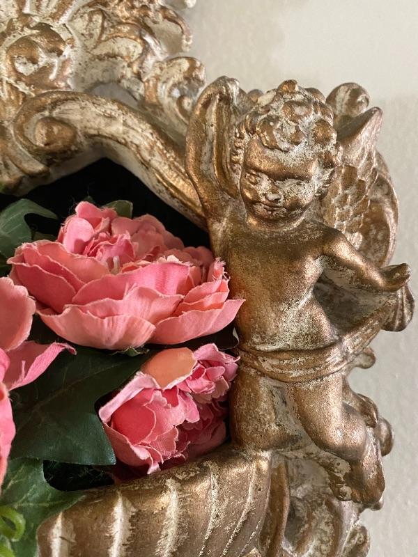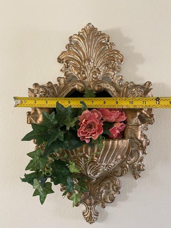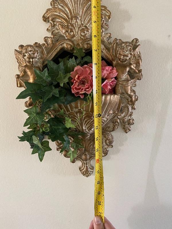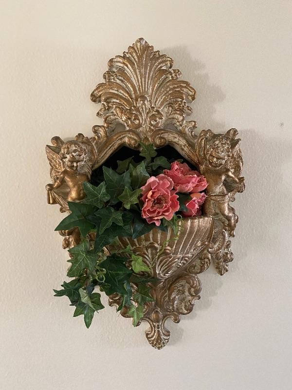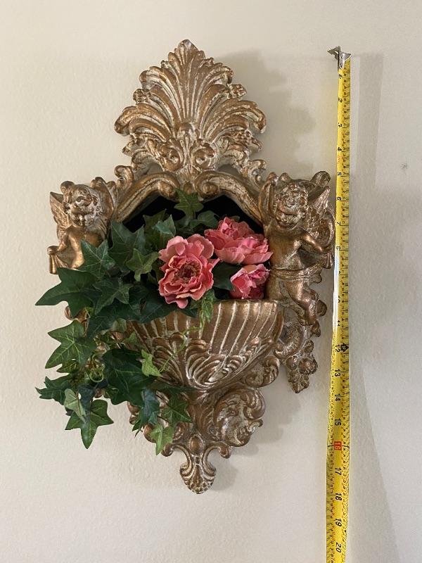 Plaster Wall Vase with Cherubs and Faux Flowers