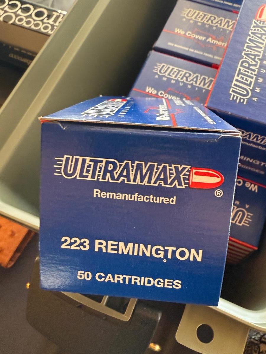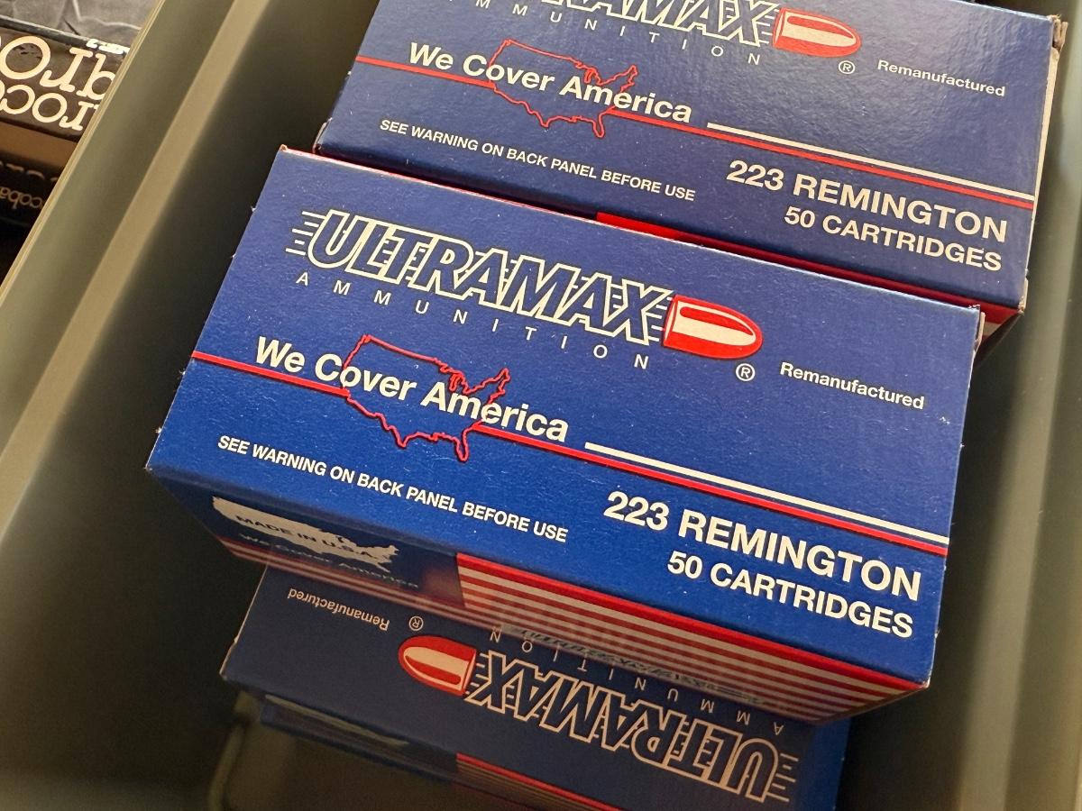 Plastic Ammo box w/10 boxes of Ultramax 223 Remington ammo