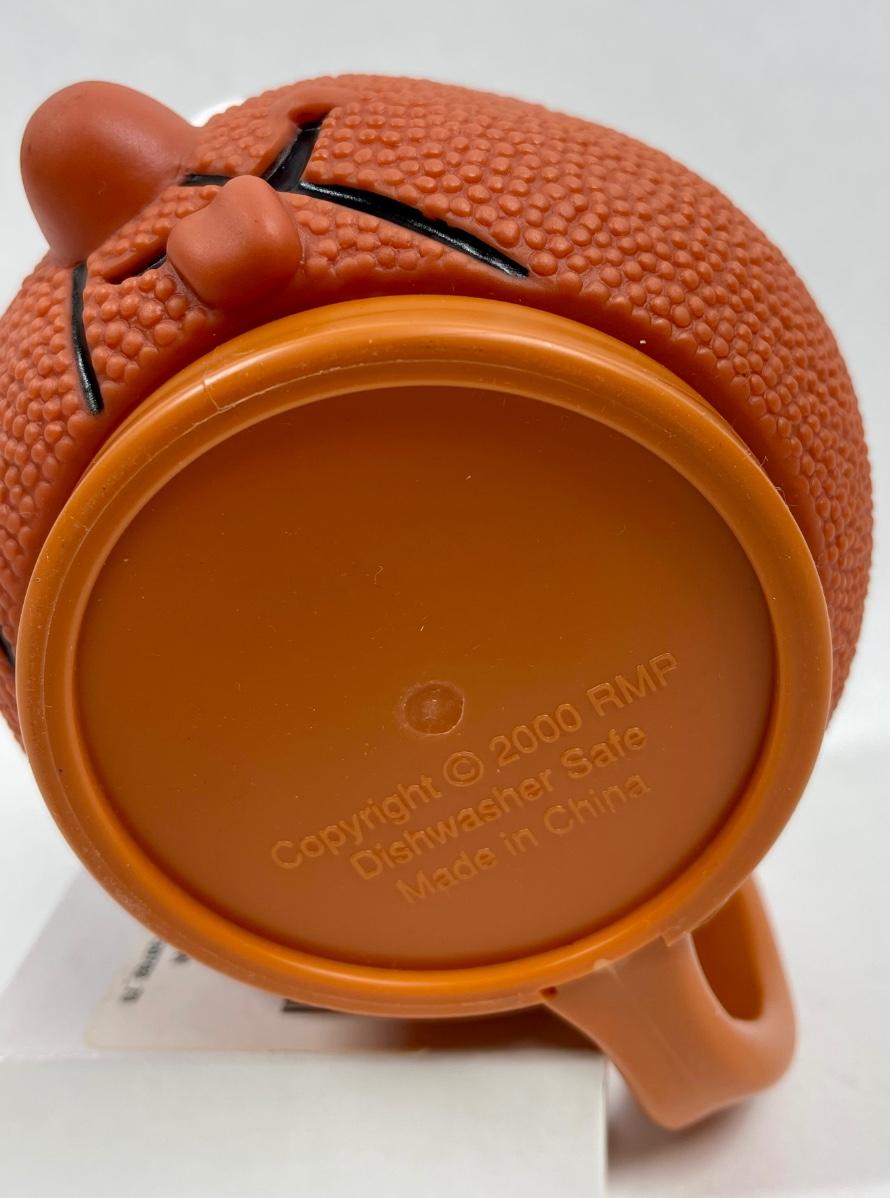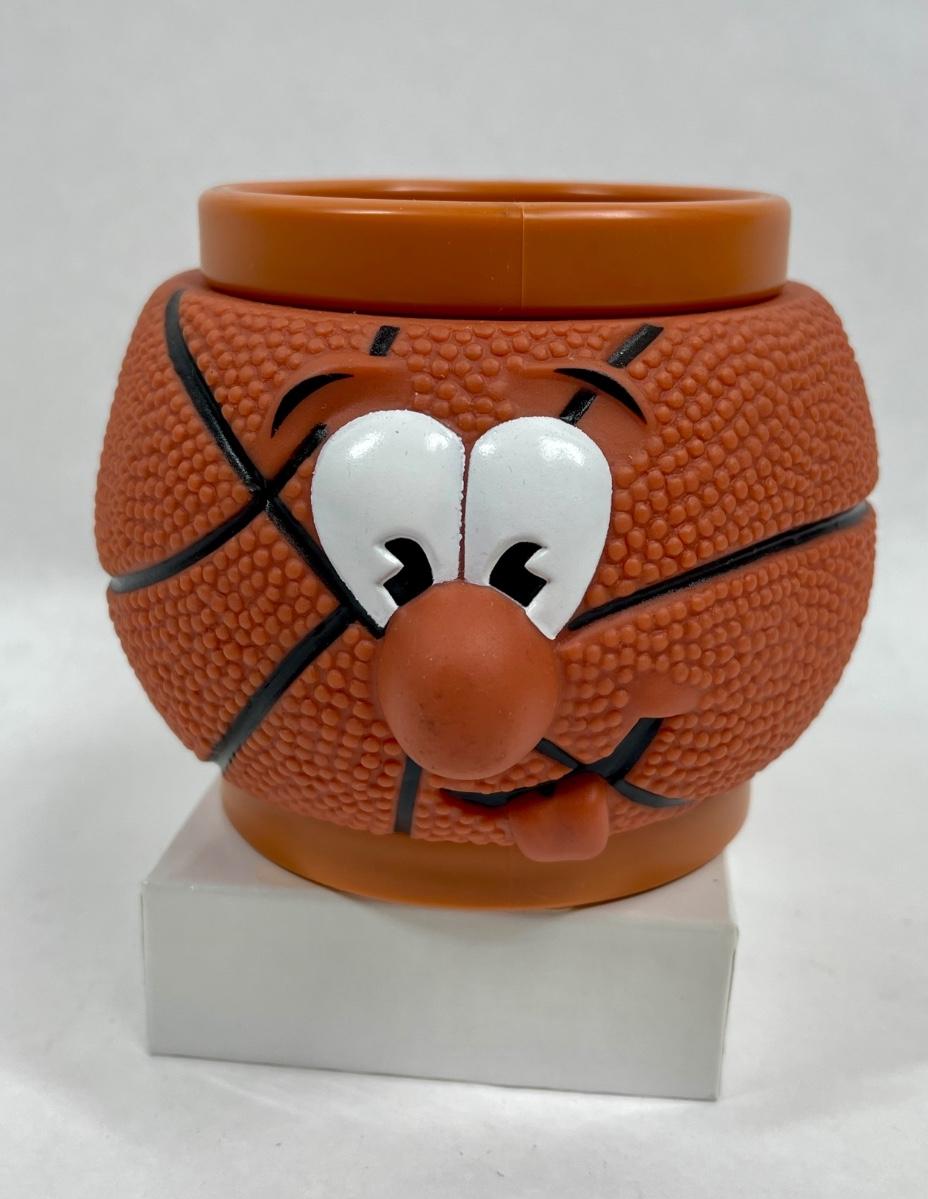 Plastic, with a silly google-eyed face. In very good ,like new, condition.