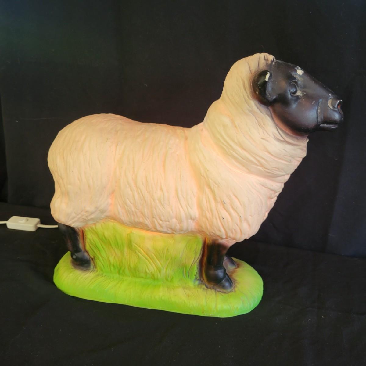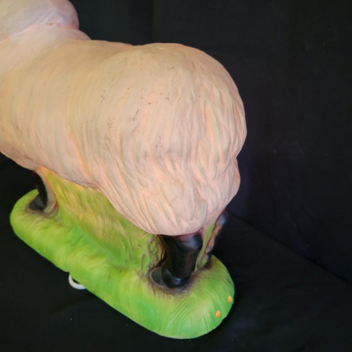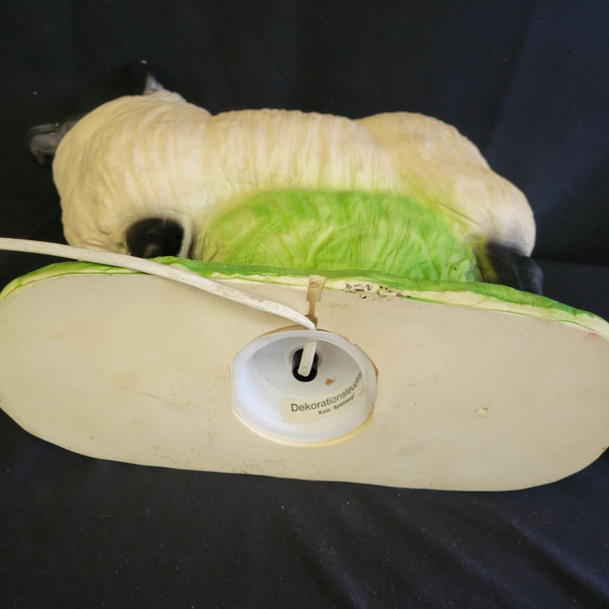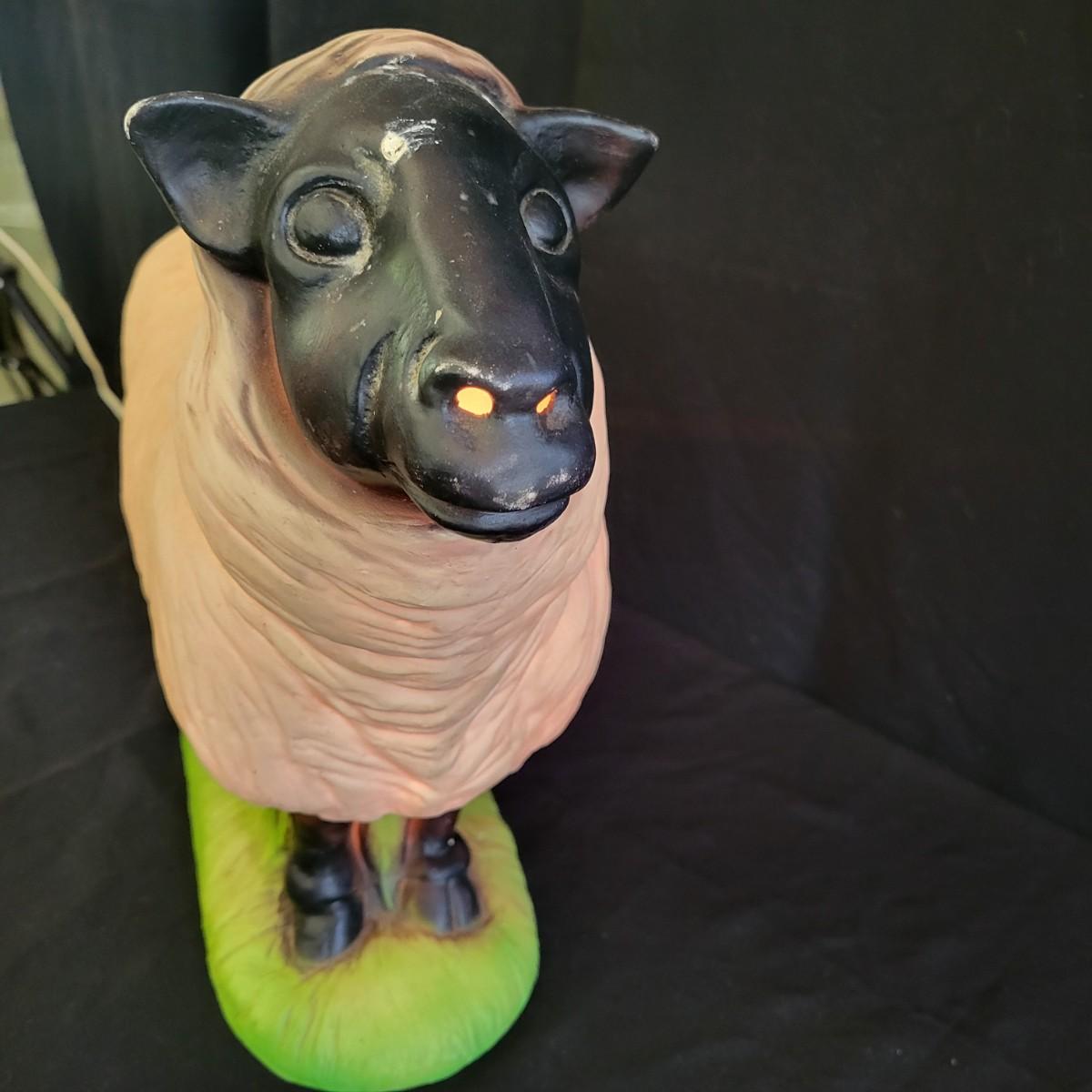 A plastic black faced sheep lamp that powered on when plugged in. This piece measures approximately 14.5" x 6" x 13"H. Shipping available