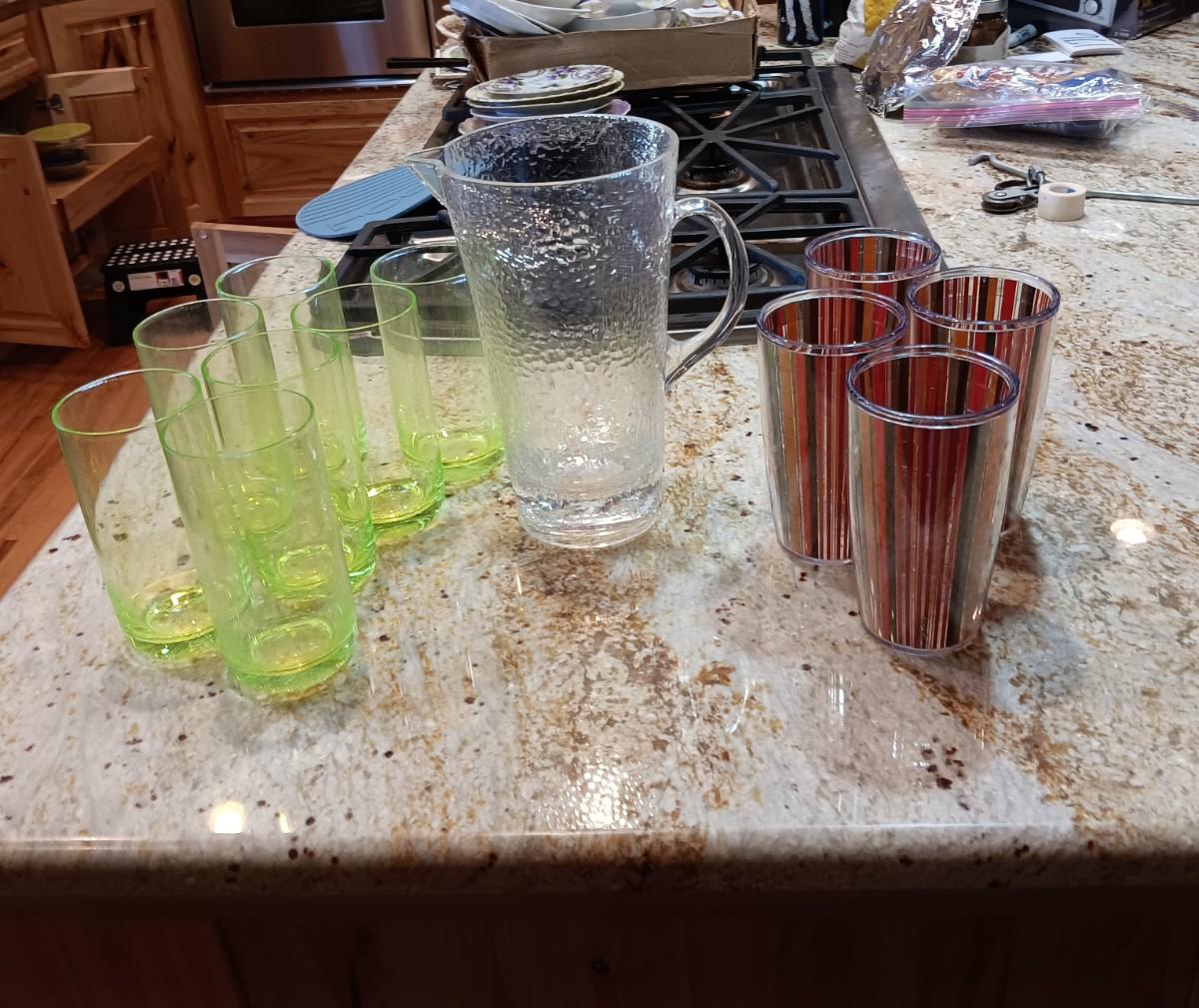 PLASTIC DRINKING TUMBLERS AND PITCHER