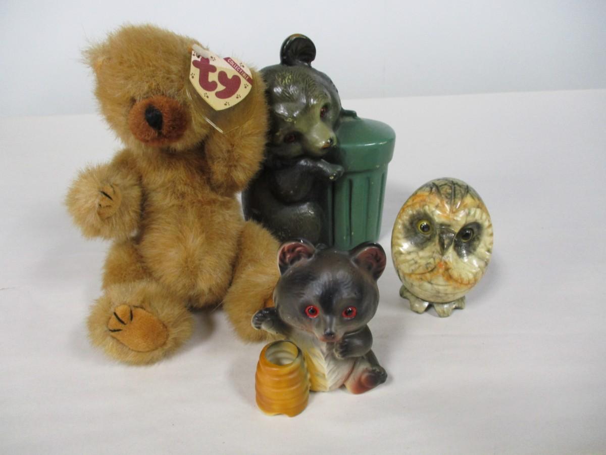 Plastic Figural Bear Bank - Bear Decor & Owl