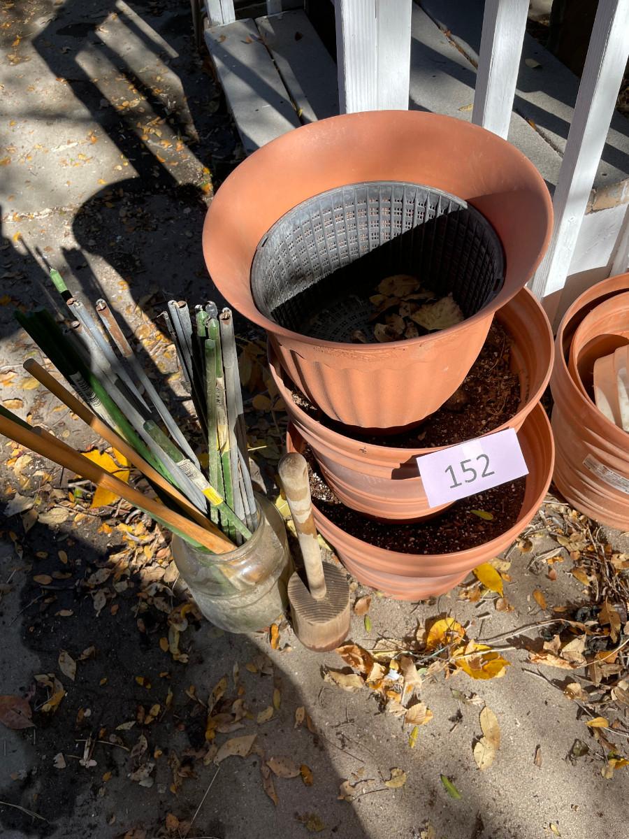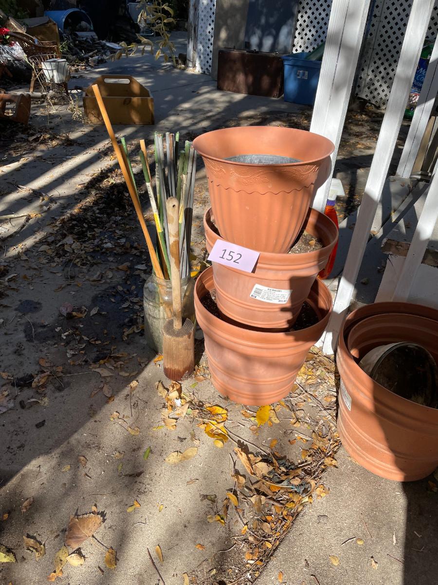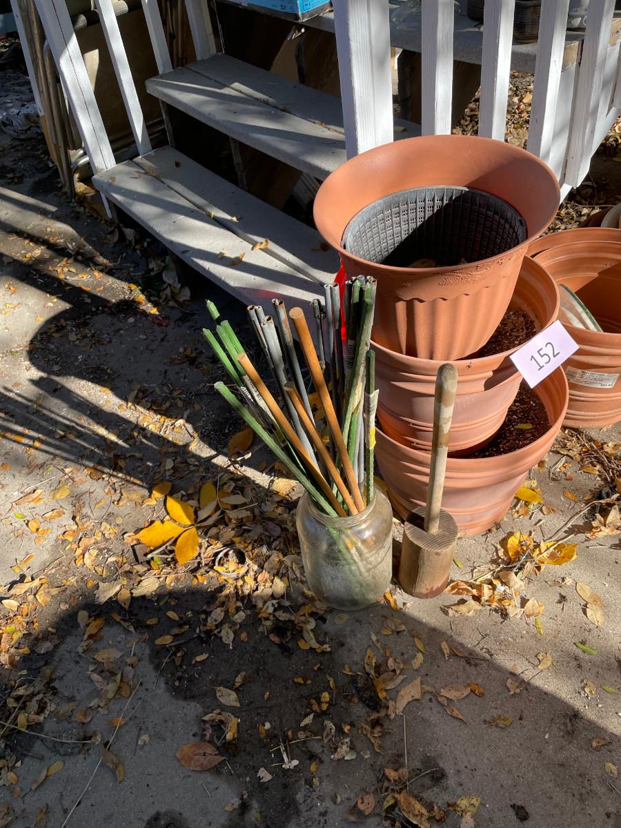 The flower pots on the right goes with a previous lot. Vase with flower stakes are included.