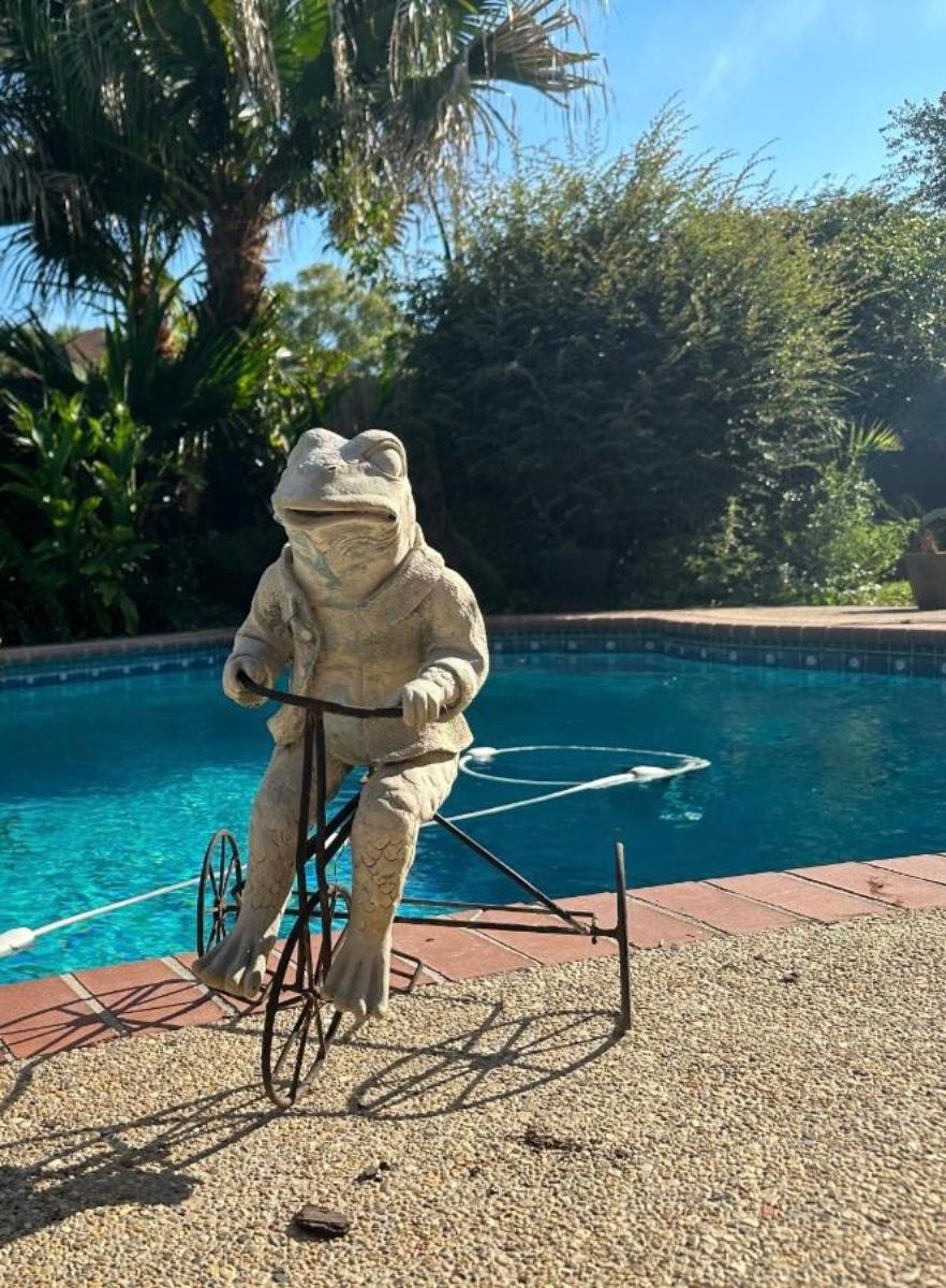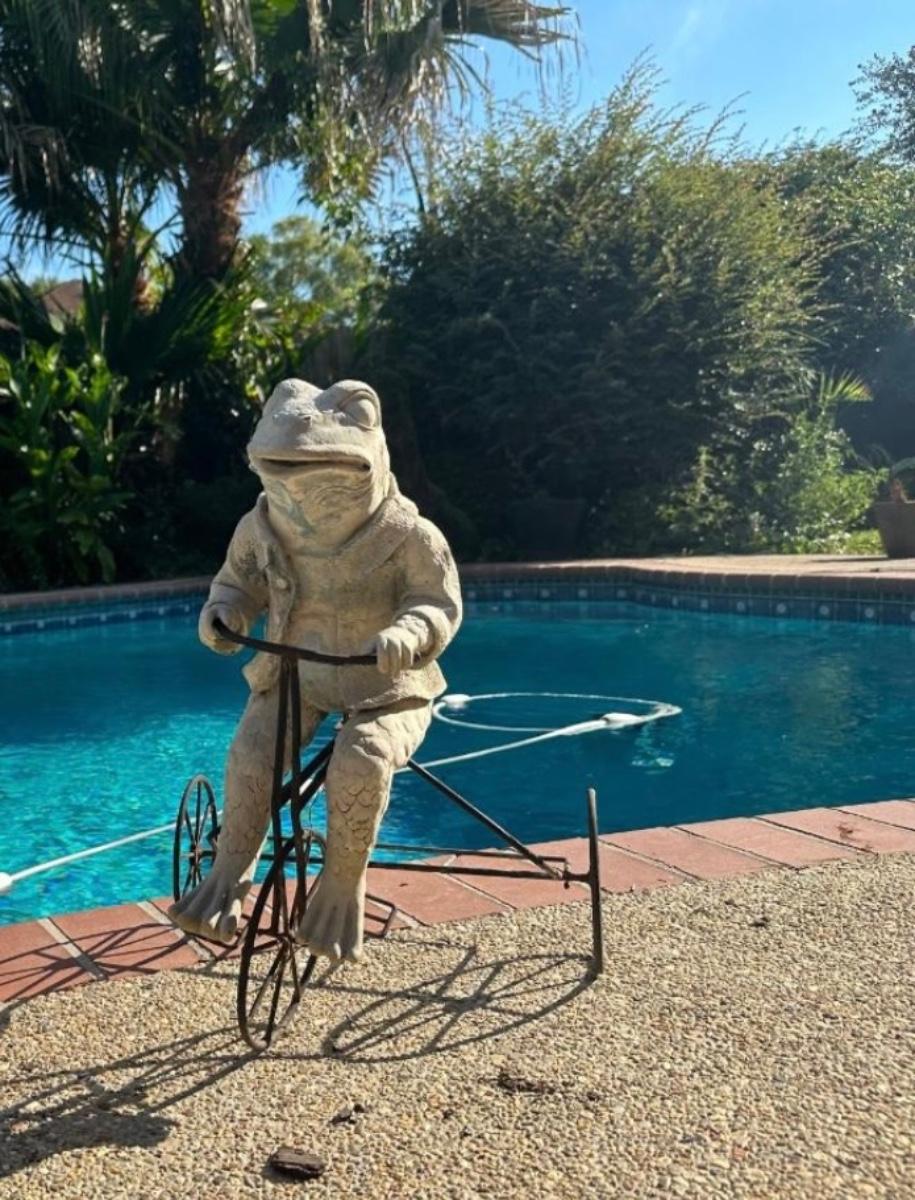 Plastic frog on metal tricycle