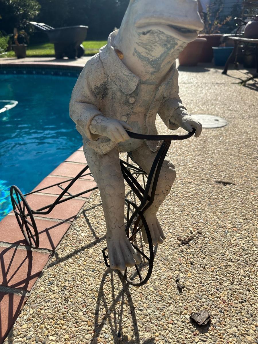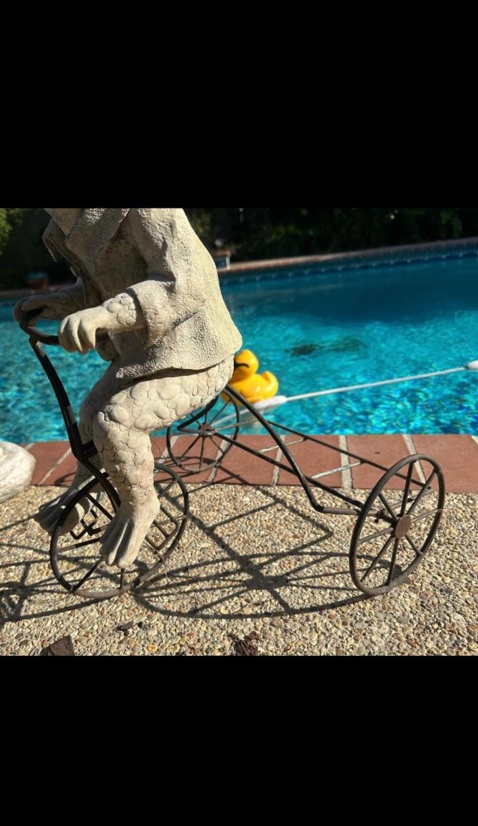 Plastic Frog on Metal Tricycle  (see description)