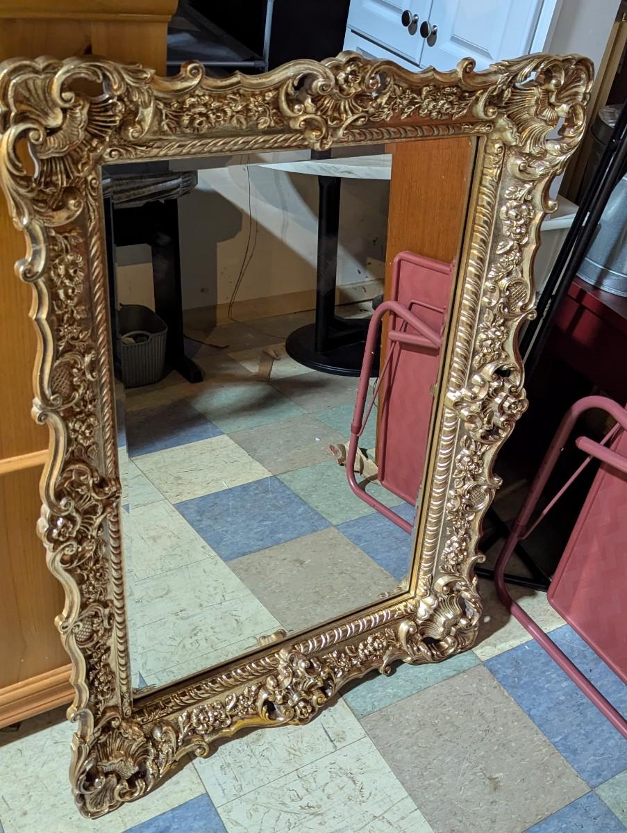 Plastic Gold Framed Beveled Mirror