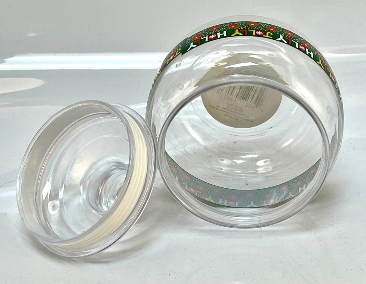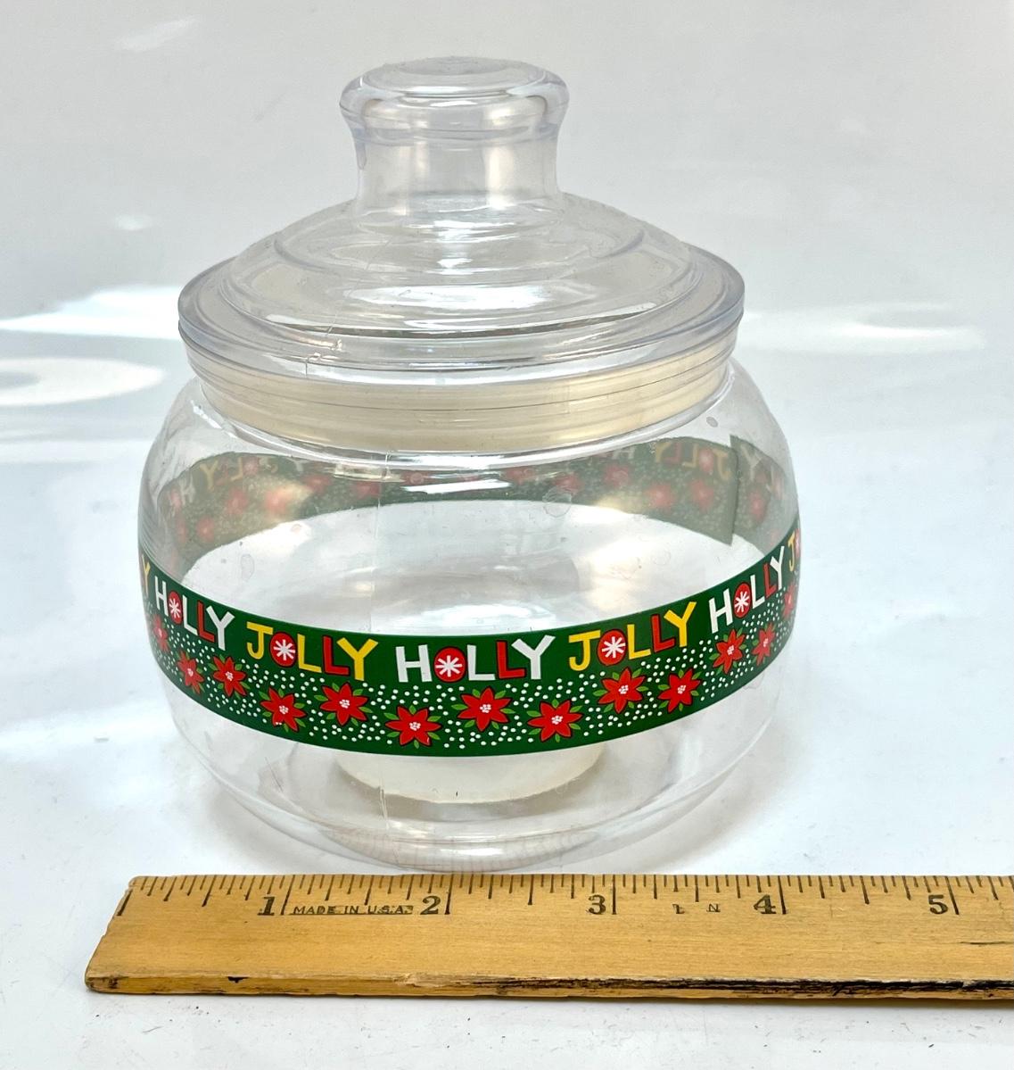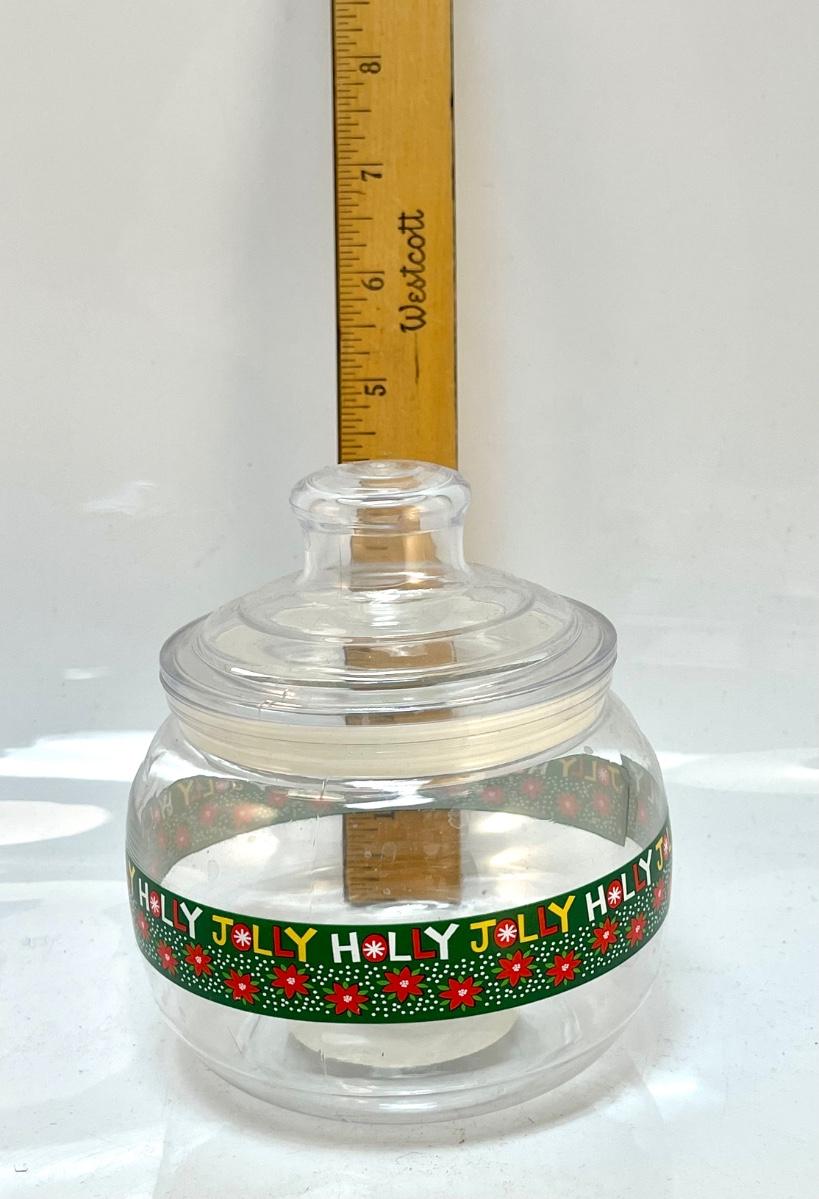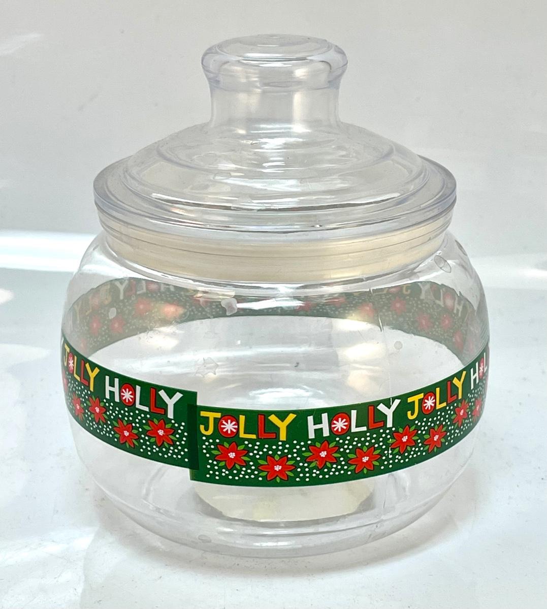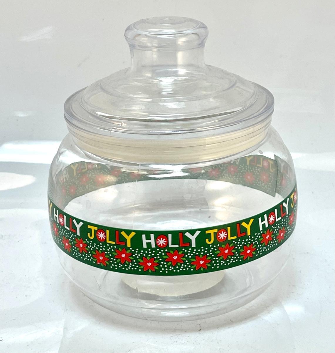 Plastic holly jolly cand container holiday decor