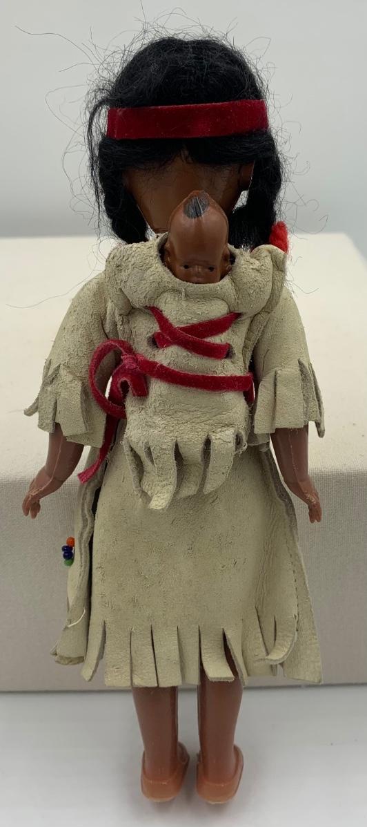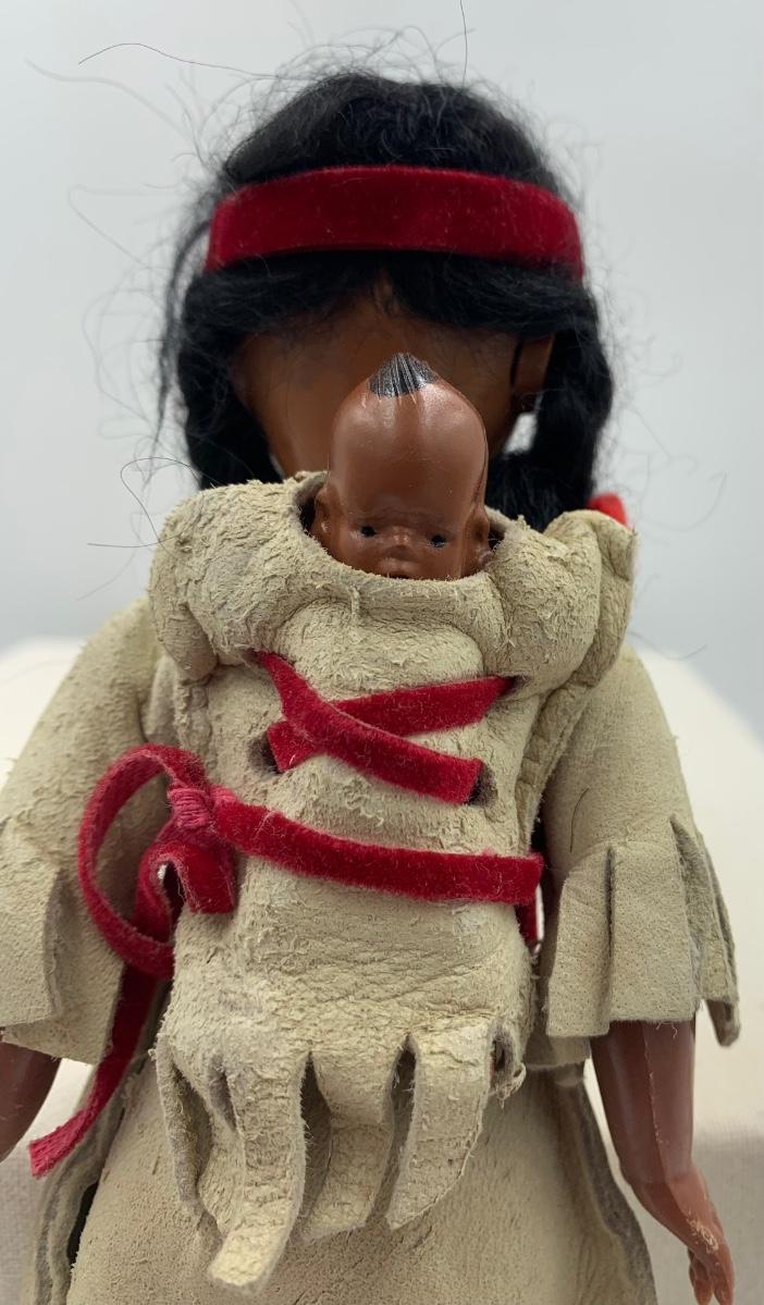 8”H plastic Indian doll with eyes that close and a papoose on her back. Some wear as shown in photos.