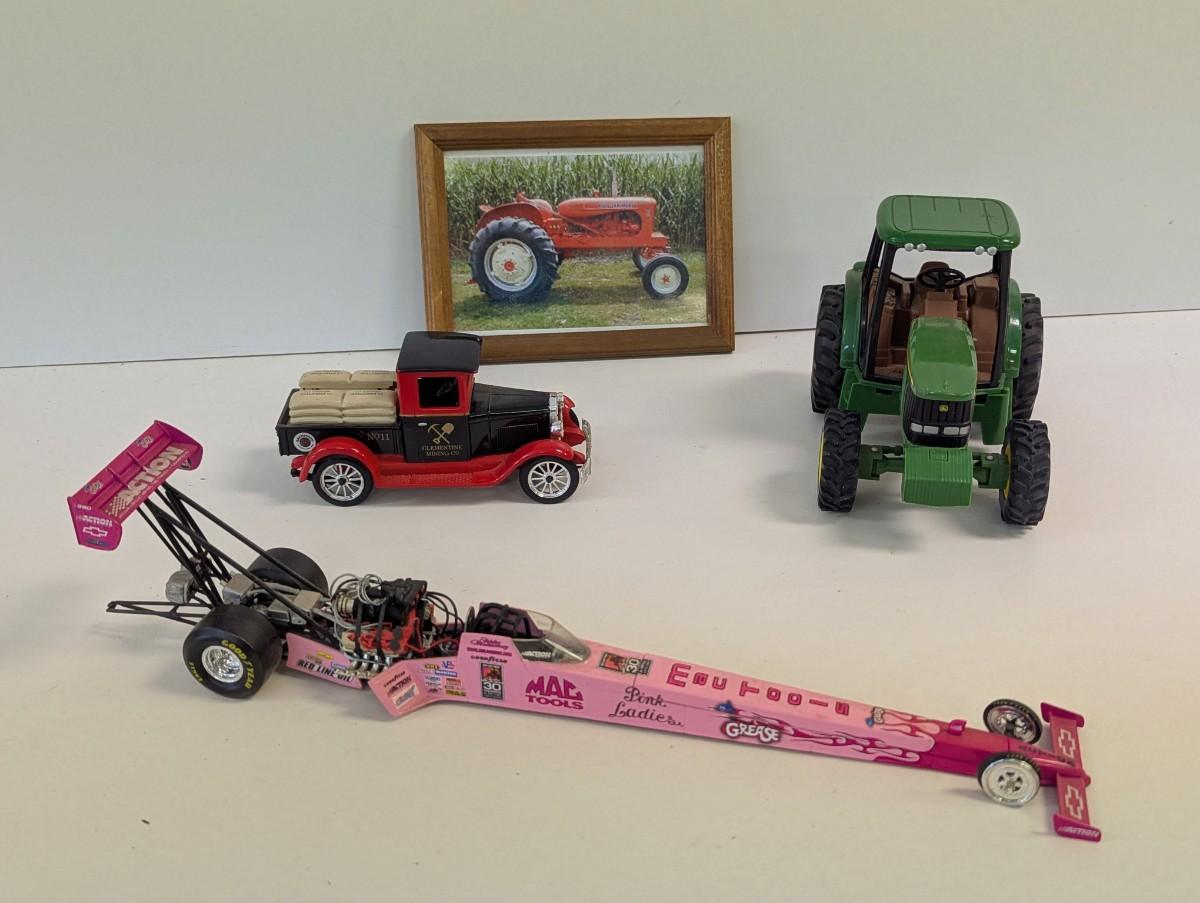 Plastic/Metal John Deere Tractor & Die-Cast Cars