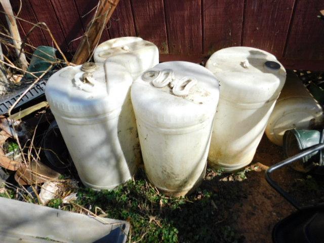 Plastic Liquid Containers Water Safe Approximately 5 Available will need to be cleaned. Unknown as to what was previously stored inside the containers. Not known if any holes.