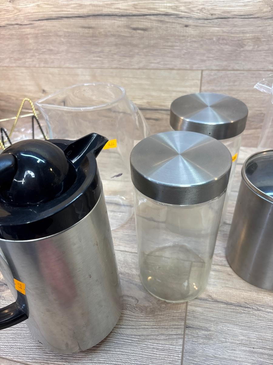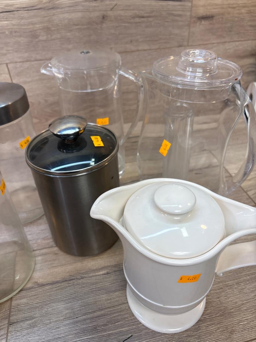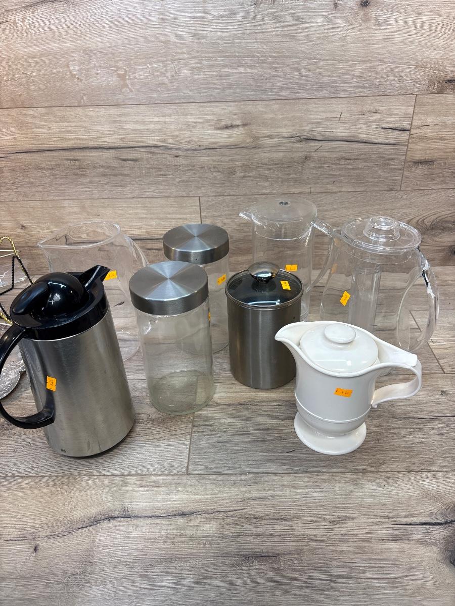 Plastic pitchers and glass canisters