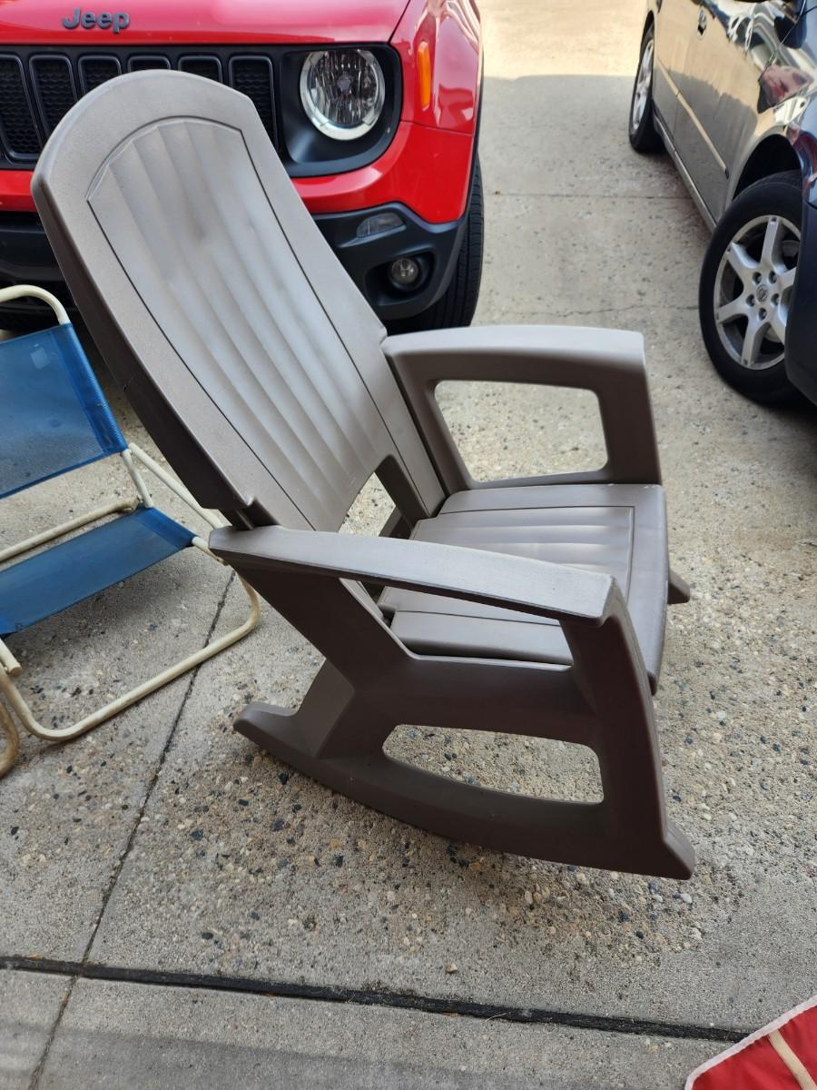 Plastic rocking chair.