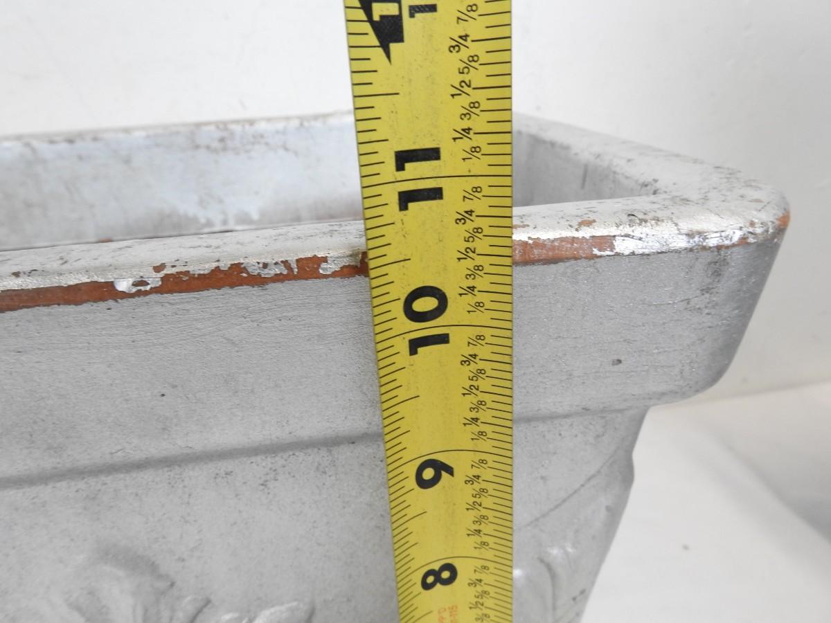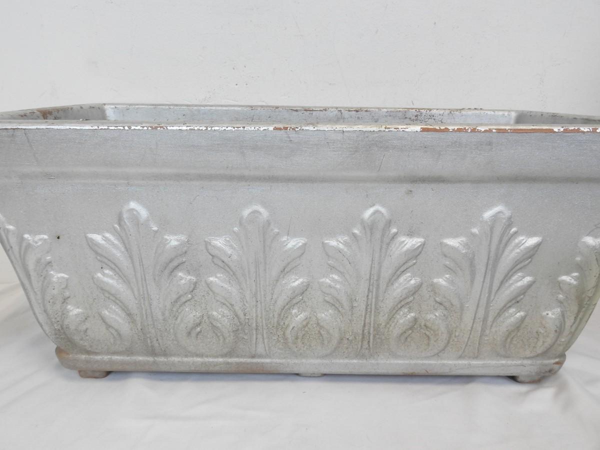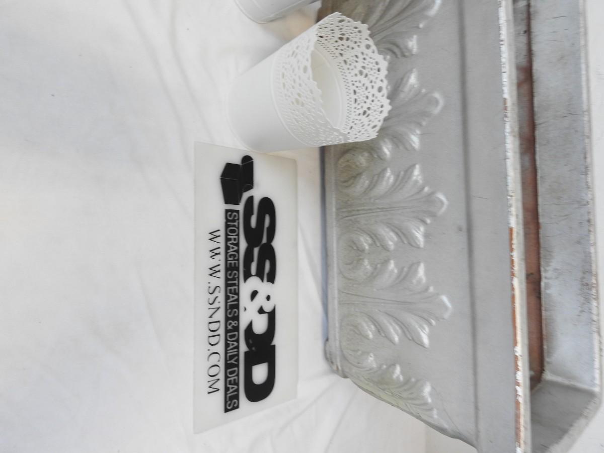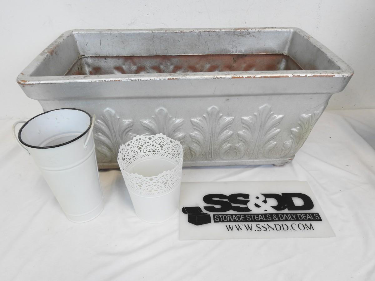 Plastic Silver Planter Box and White Medal Decorative Plant Holders.