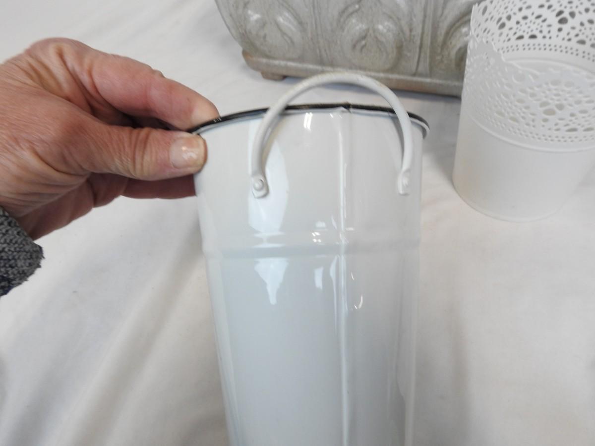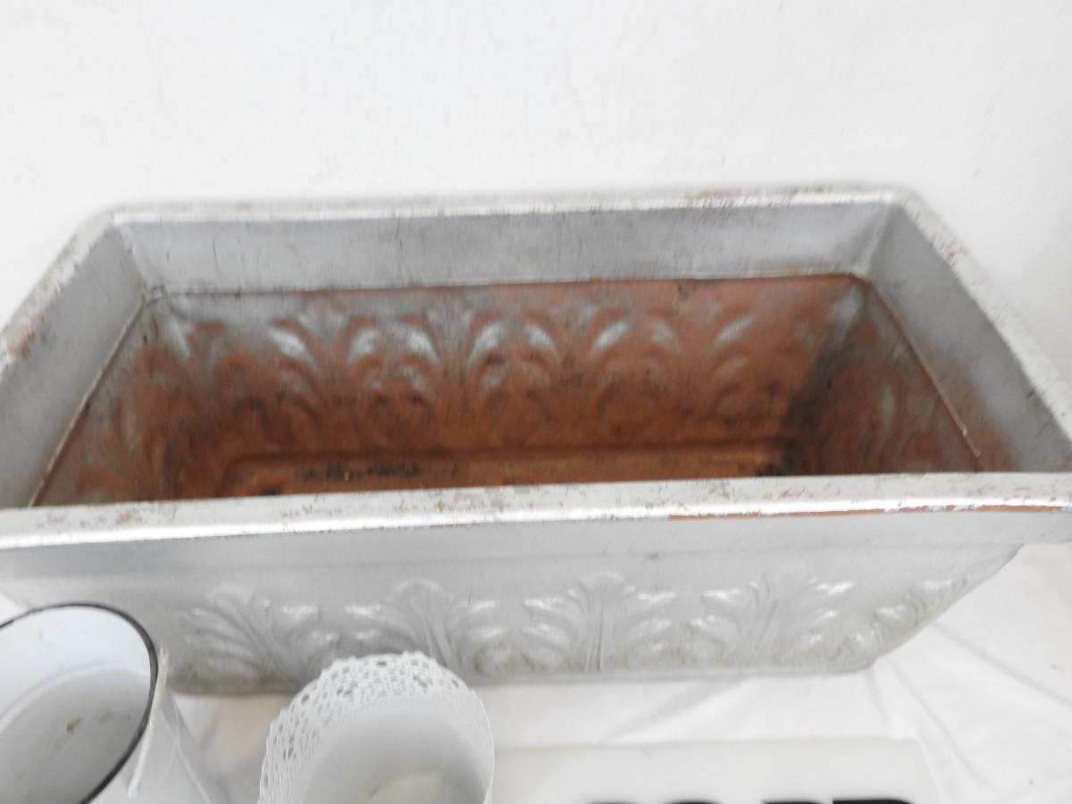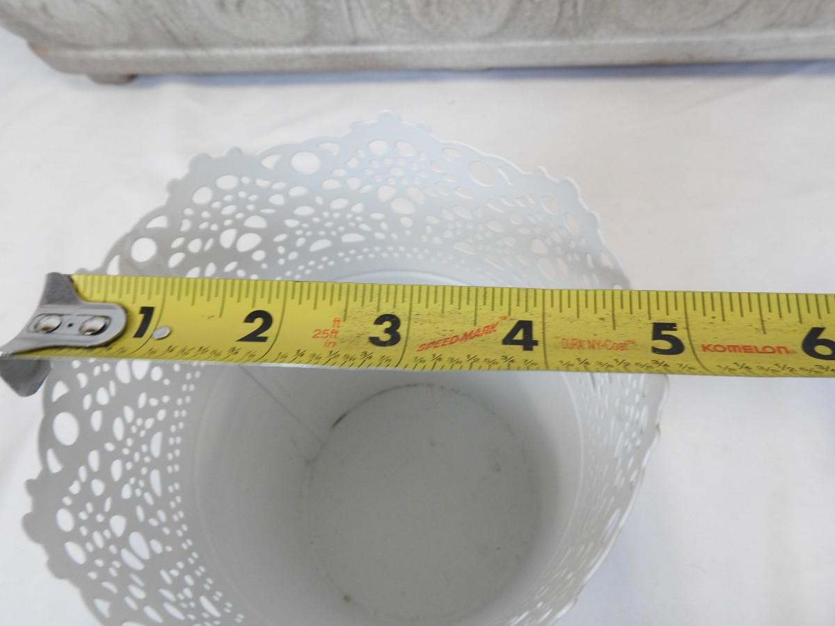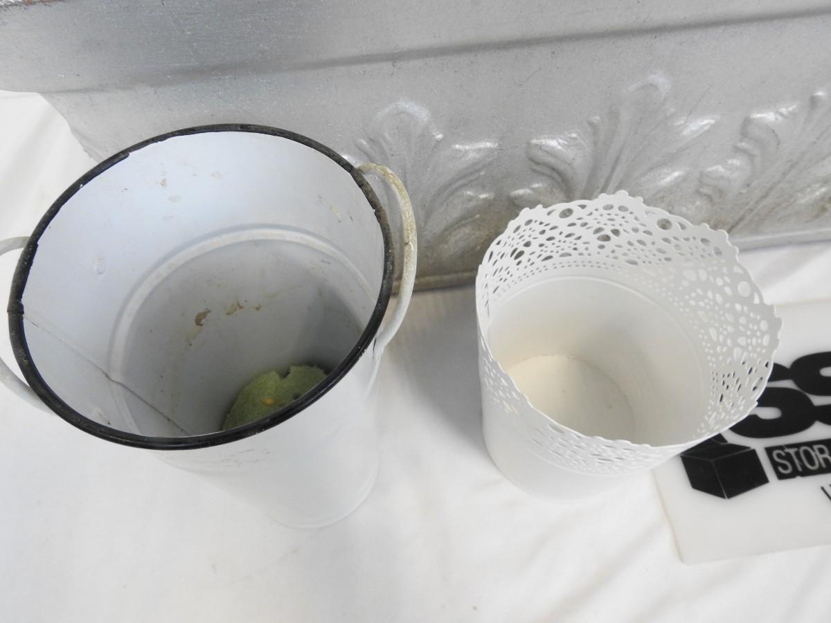 Plastic Silver Planter Box and White Medal Decorative Plant Holders.