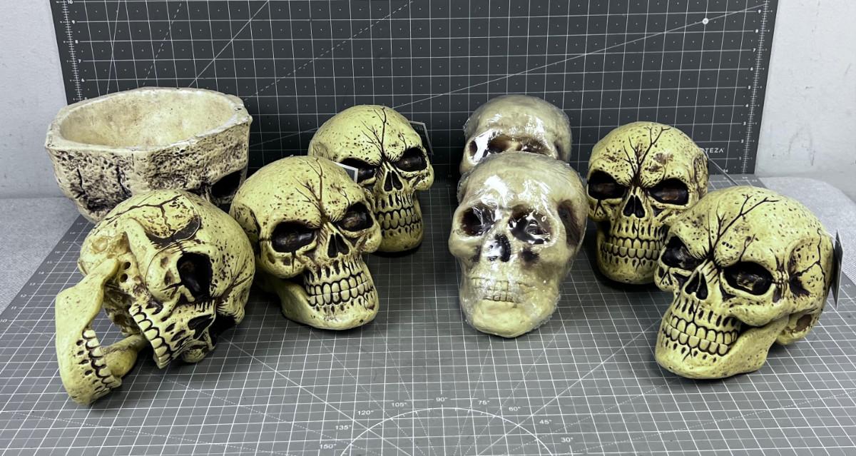Plastic SKULLS (7) Plus Bonus Dish for Candy or Whatever