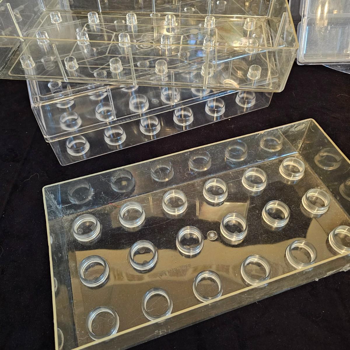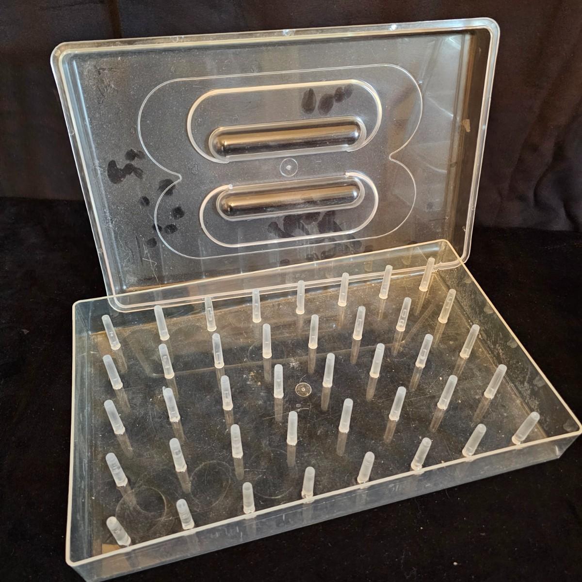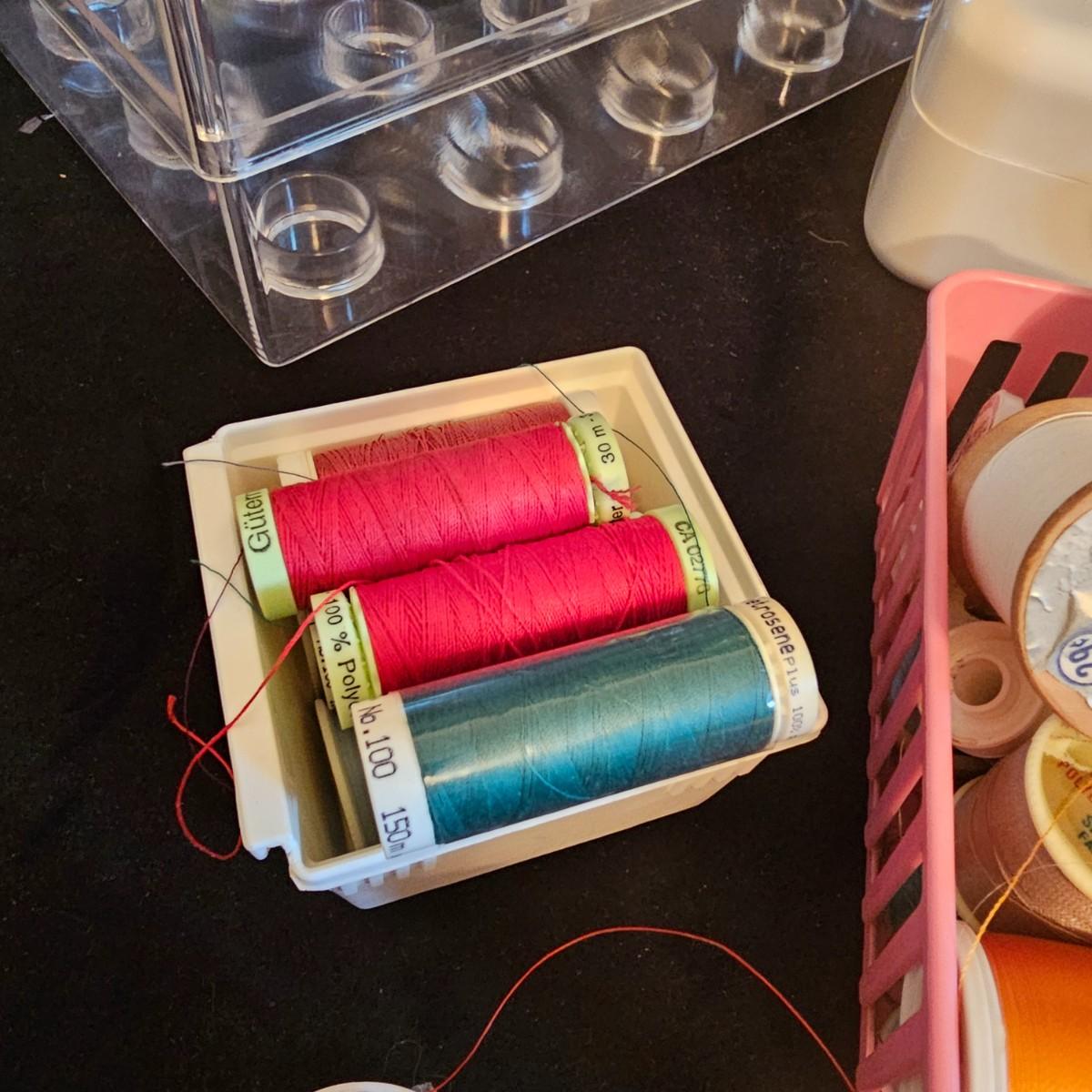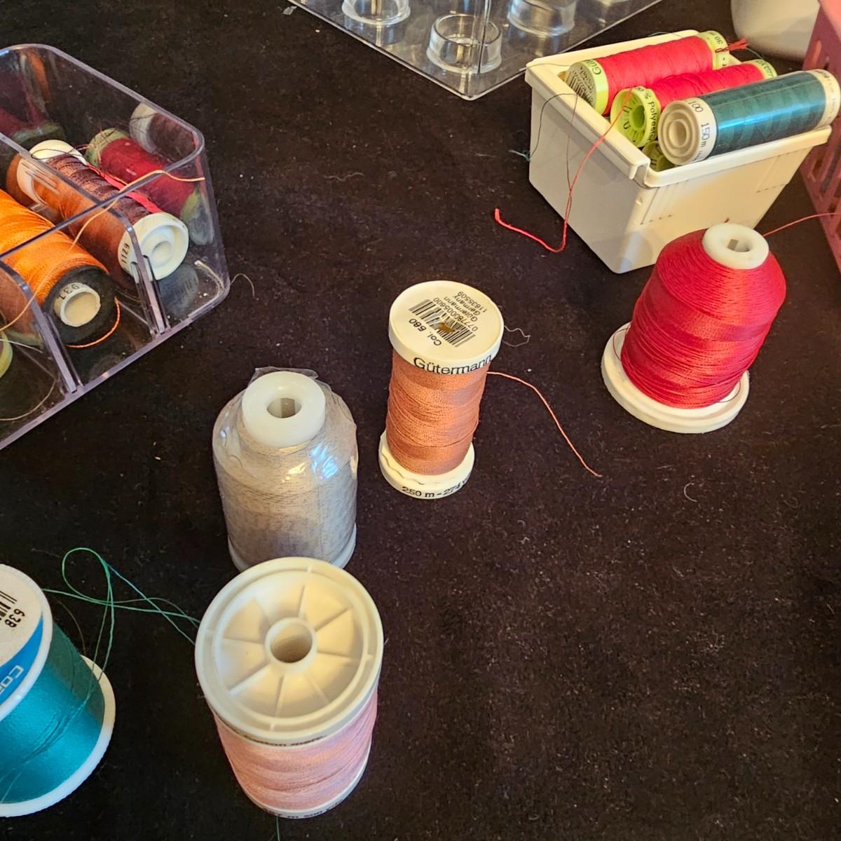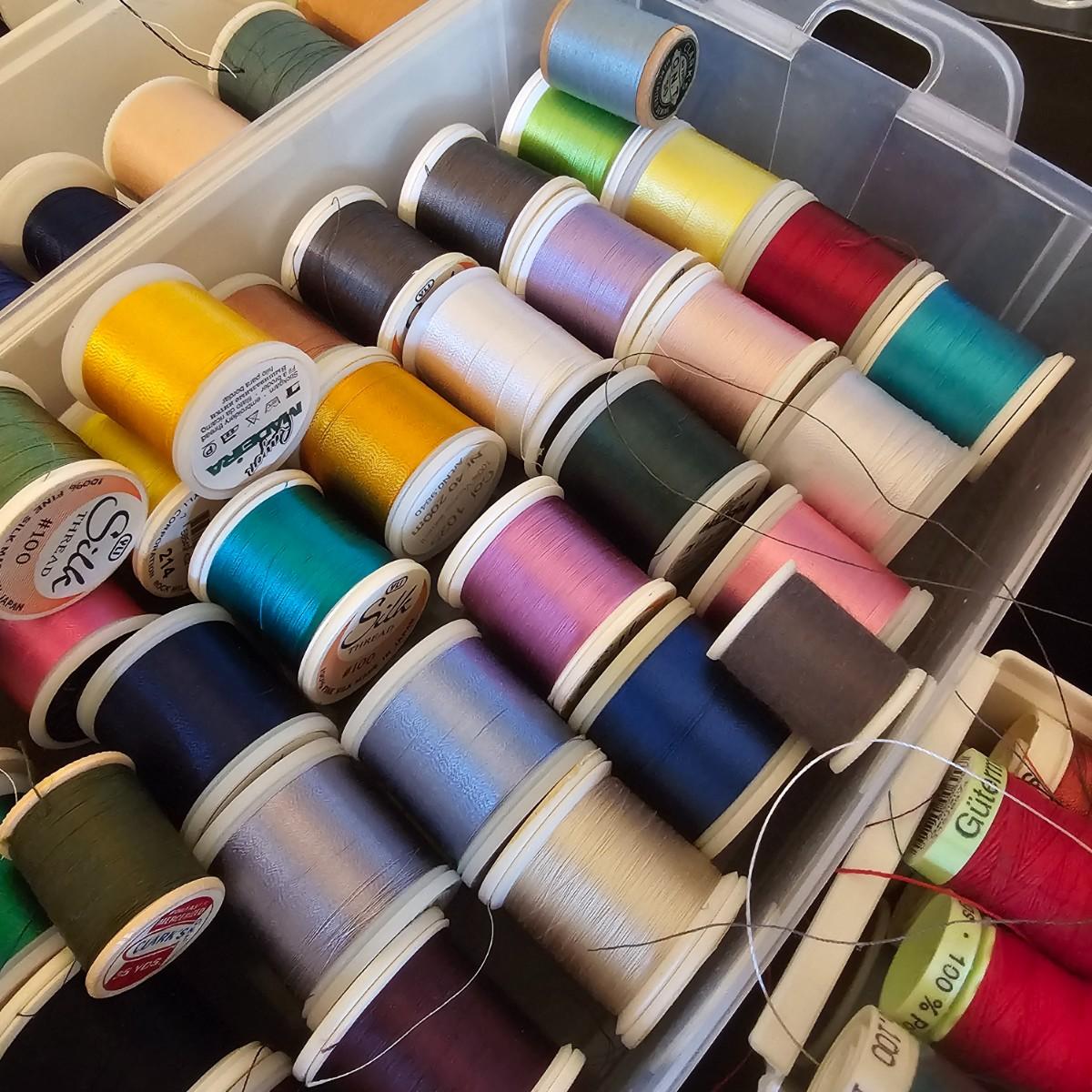 Seven clear plastic cases designed to hold sewing and embroidery thread. Two cases are designed for larger size cones. These measure 14.5" x 7.5" x 5"H. Other cases are 14" x 8" x 3"H. Also includes a quantity of thread in the cases and loose. Coats, Sulky, silk and cotton blends. One Sidewinder manual bobbin winder with power brick. Item powered on when plugged in. See photos for details. Local pickup only.