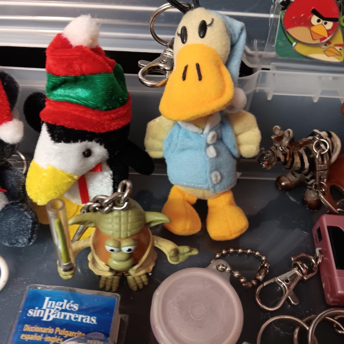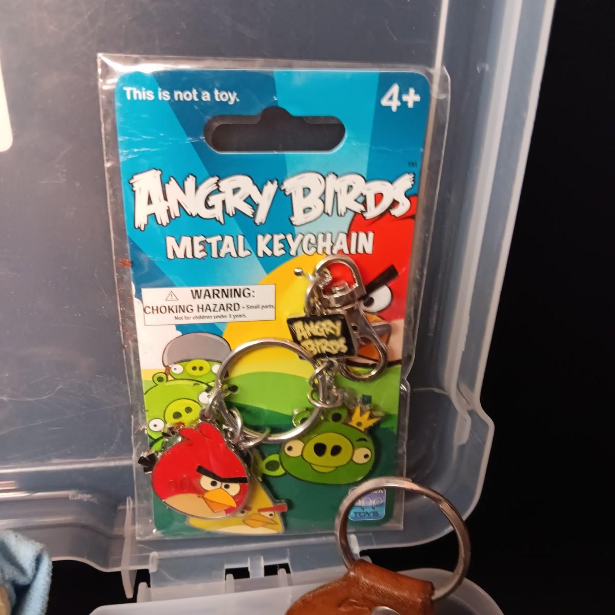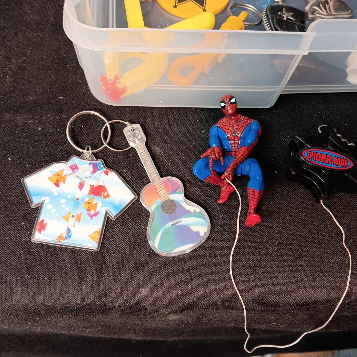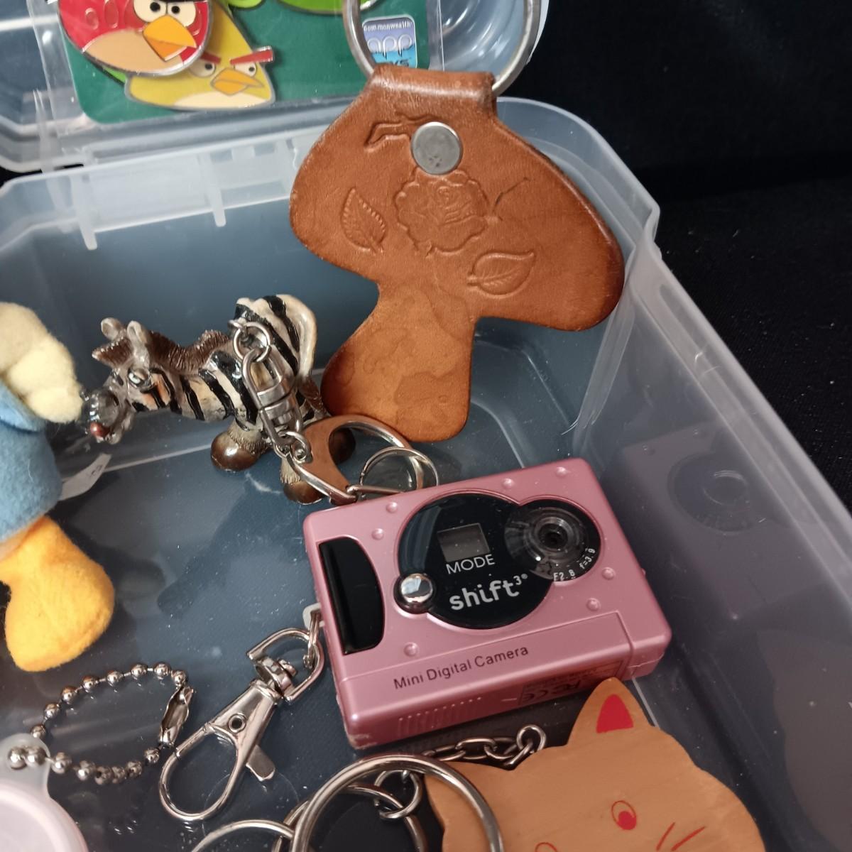 PLASTIC STORAGE CONTAINER FILLED WITH UNIQUE KEYCHAINS