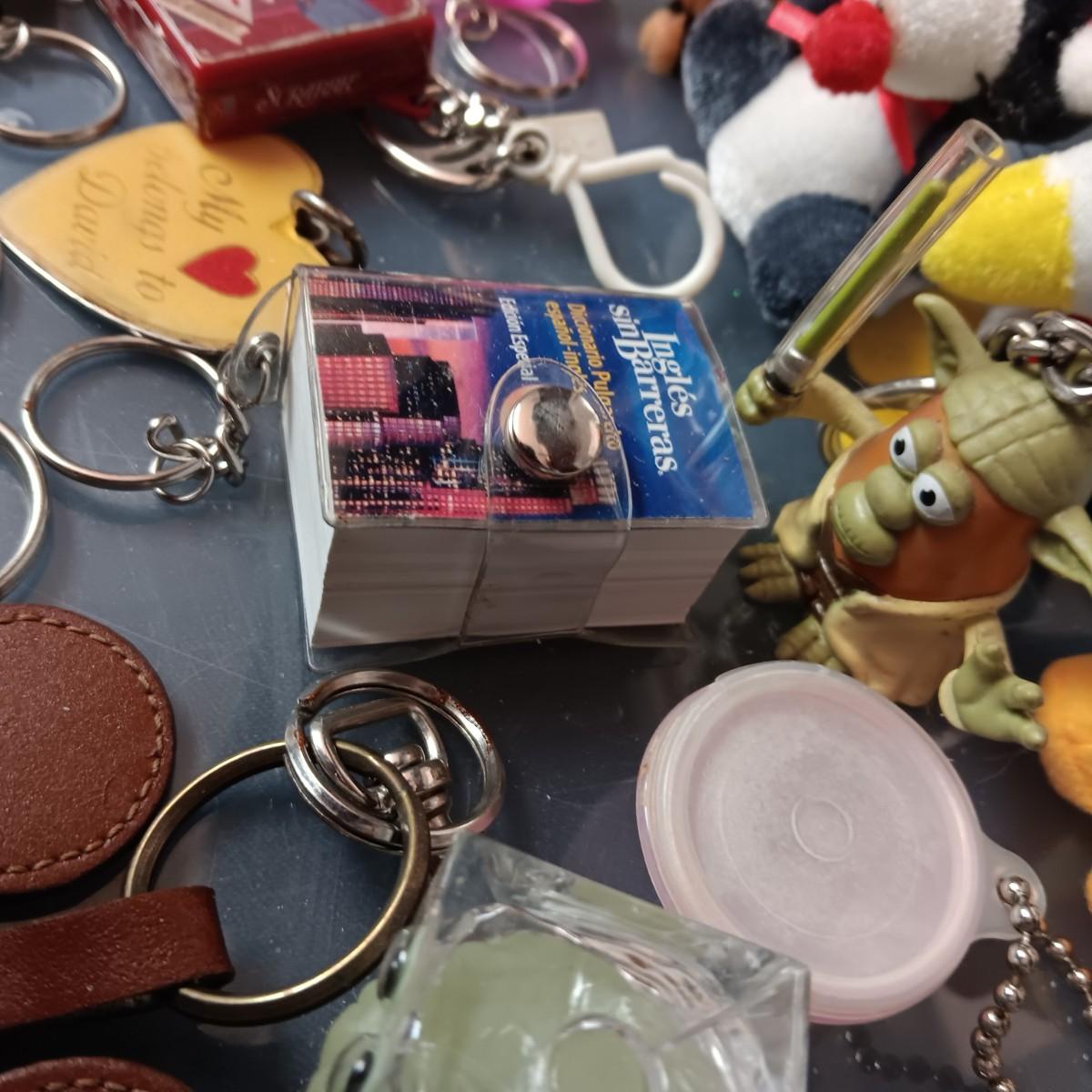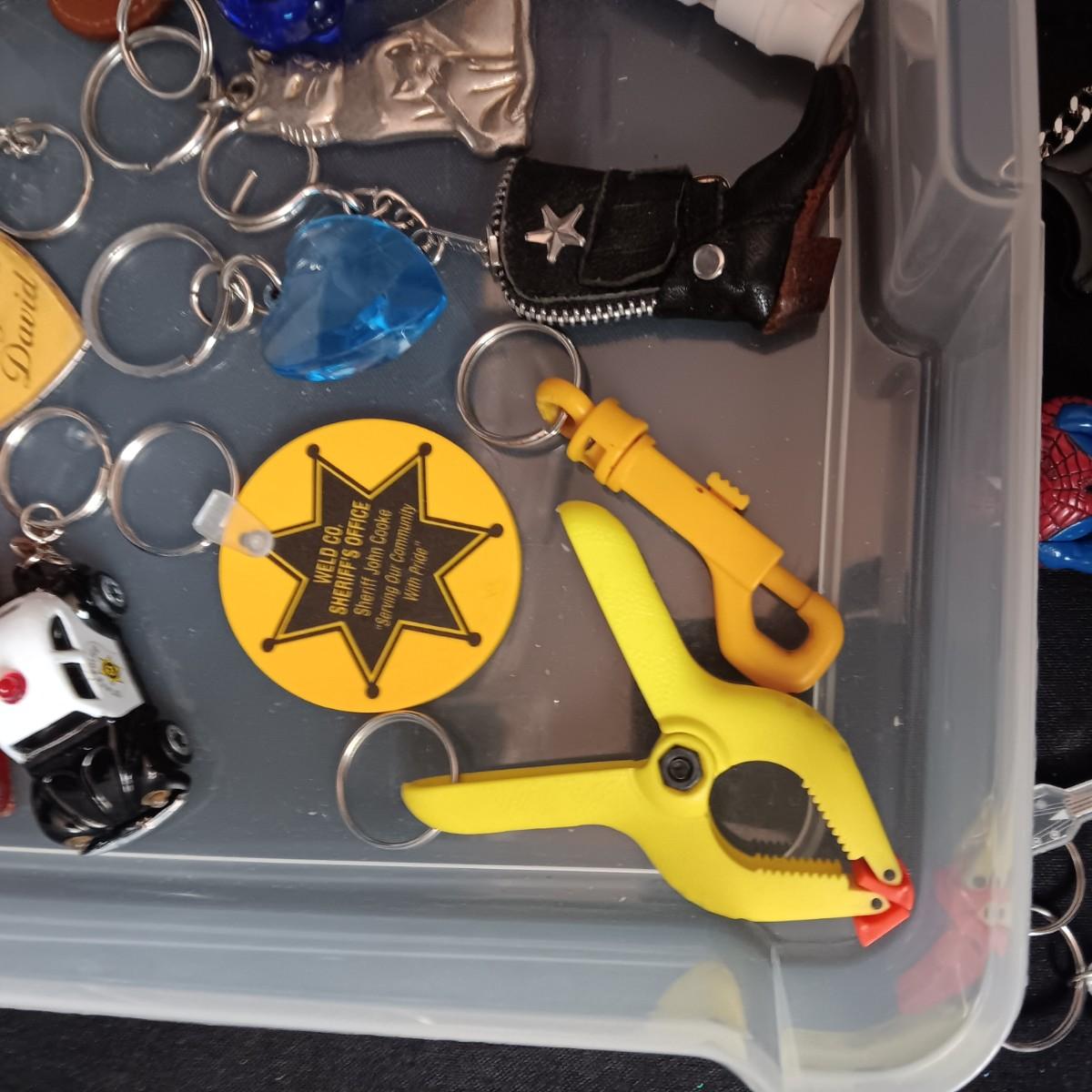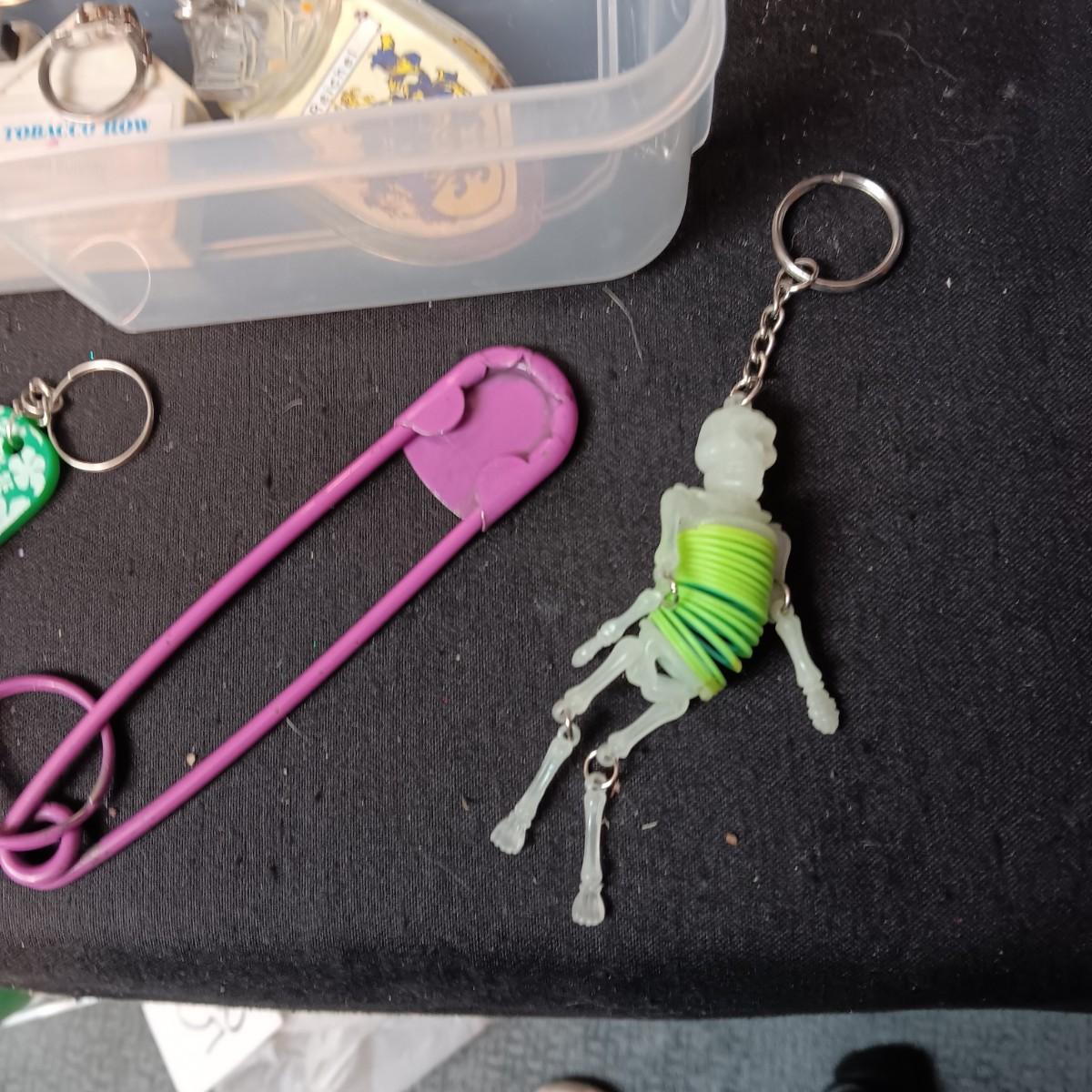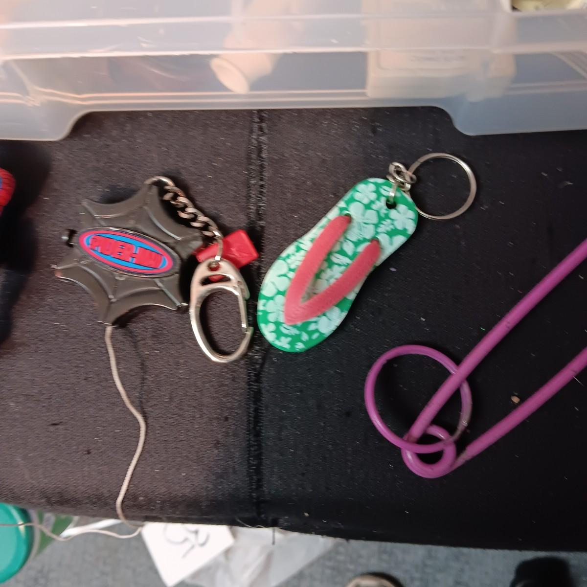 PLASTIC STORAGE CONTAINER FILLED WITH UNIQUE KEYCHAINS