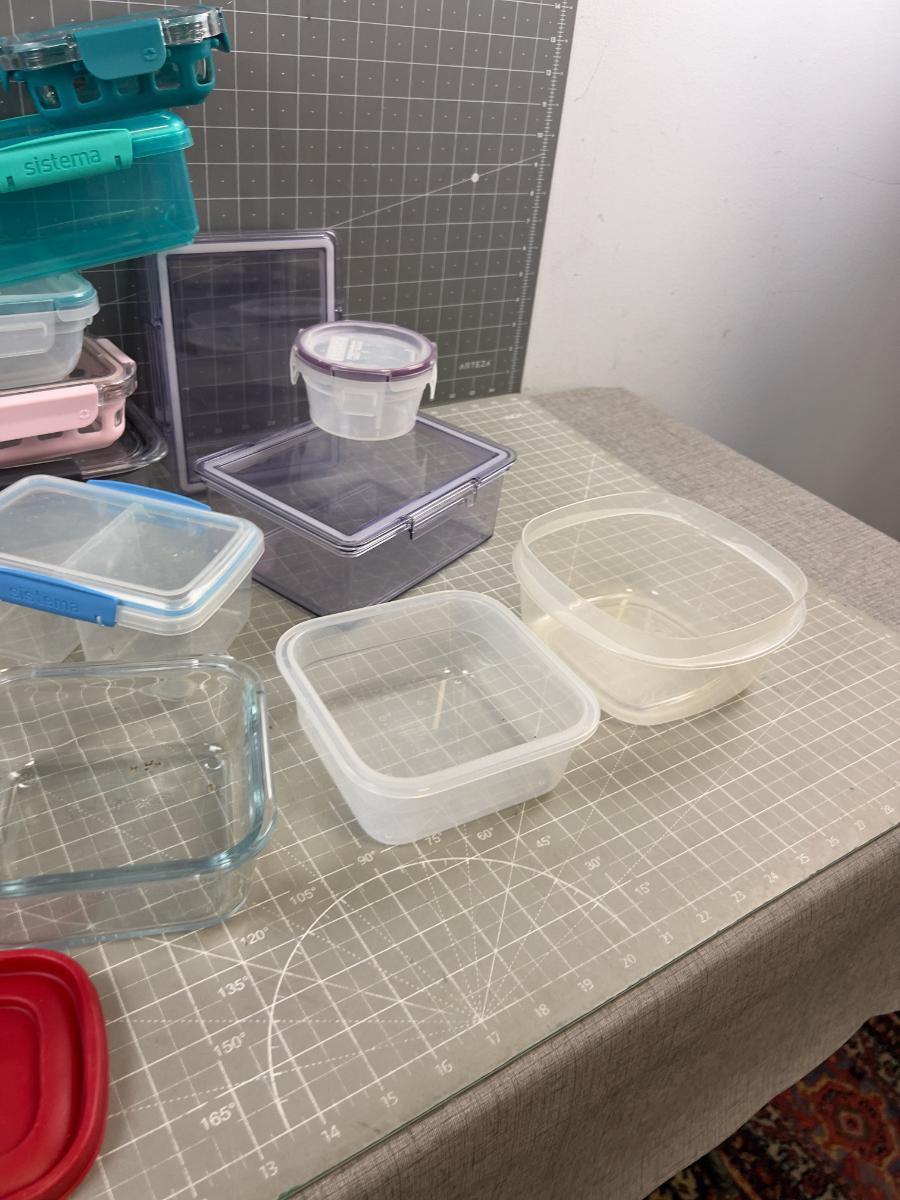 Used. Usable. Good Condition. Some Don’t match up with size, but the bulk of them do have matching lids. But hardly used.