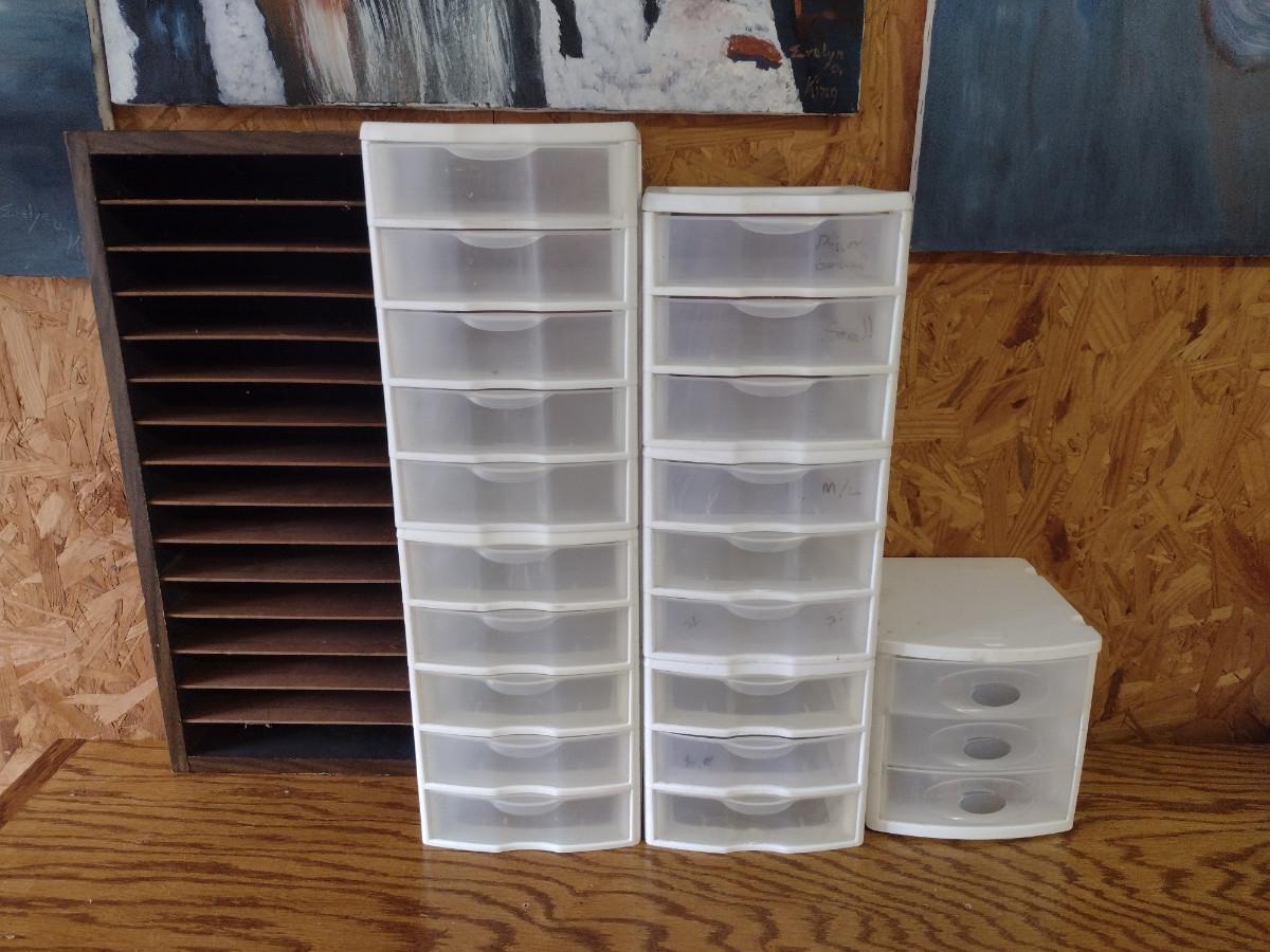 Plastic Storage Drawer Organizers and Wooden Media/Office Organizer