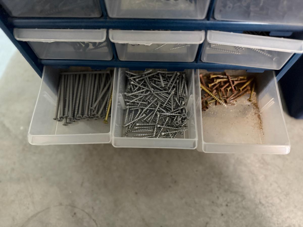 Plastic Storage Drawers – 42 Compartment Organizer (lot of 2) w/ items inside