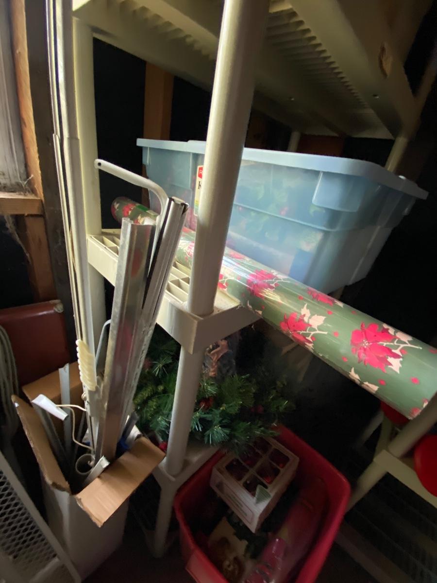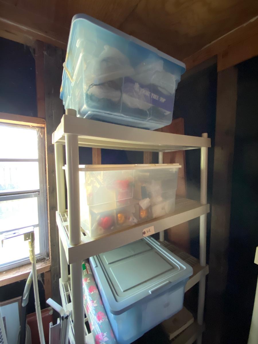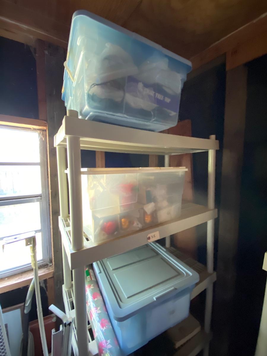 Plastic Storge Shelf, Christmas Lot as pictured