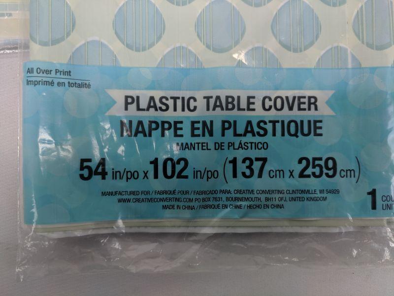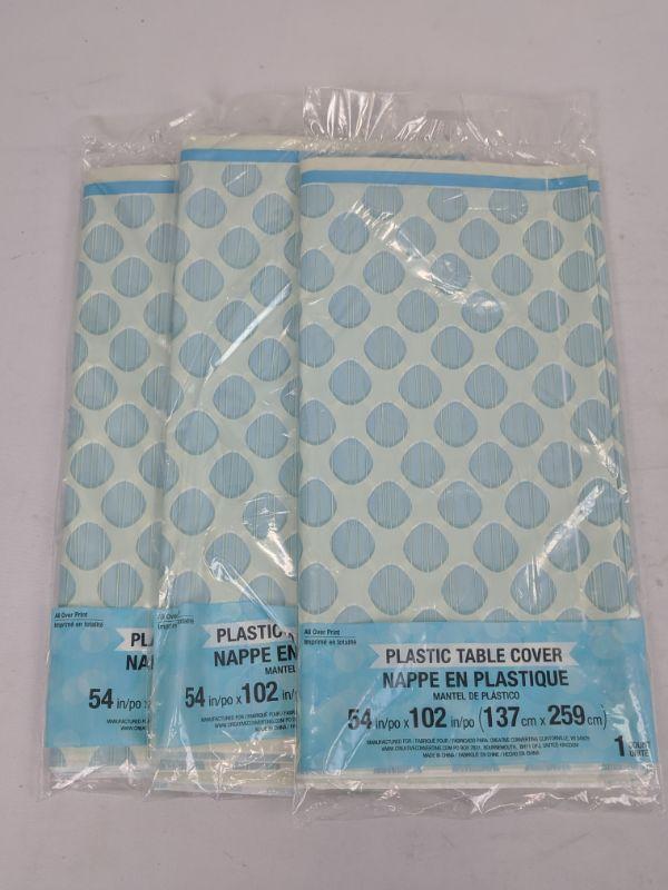 Plastic Table Cover, Blue/Polka Dot, 54" x 102", Set of 3 - New