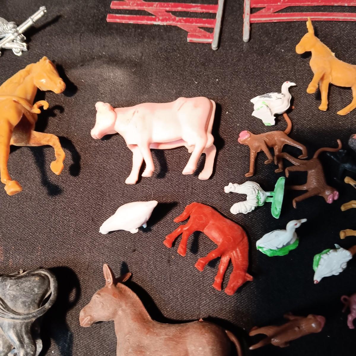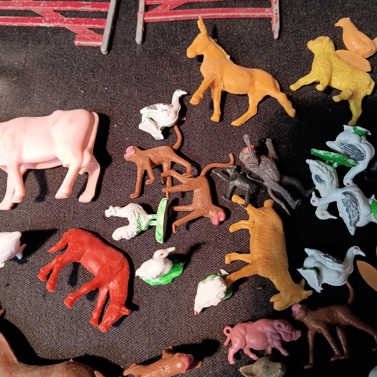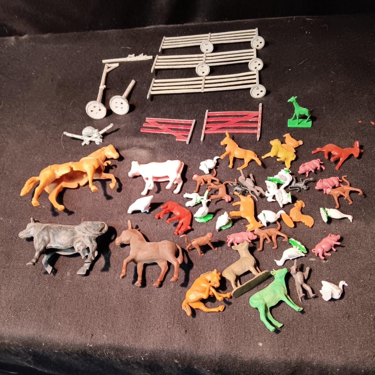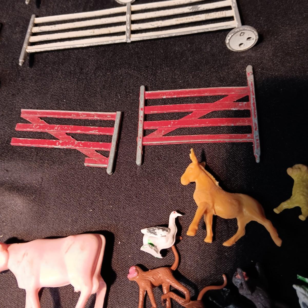PLASTIC TOY FARM ANIMALS AND METAL FENCING