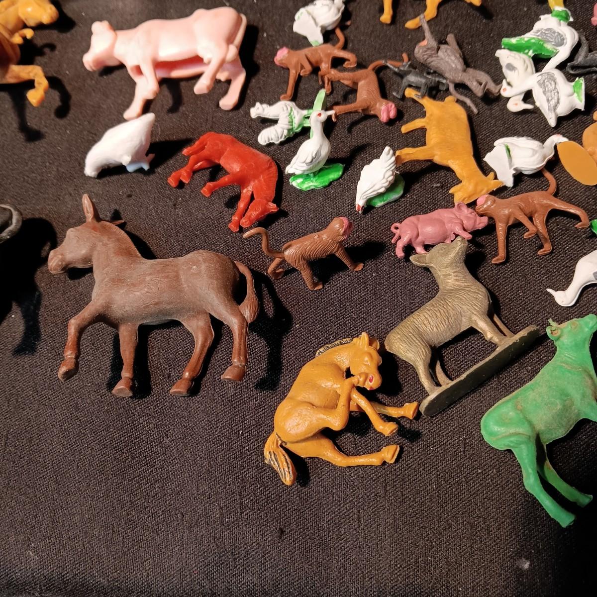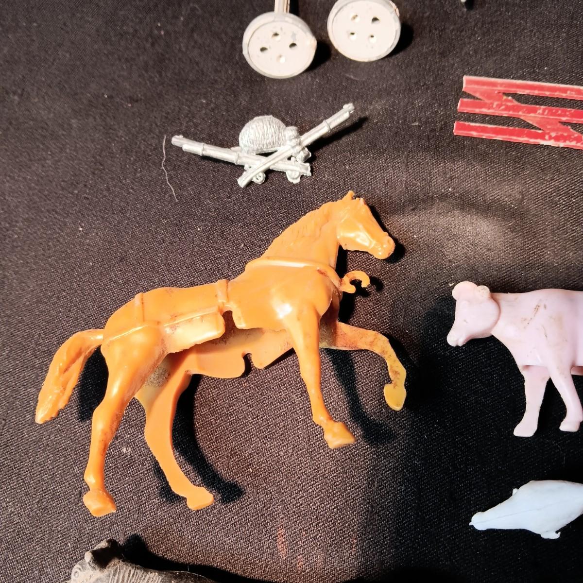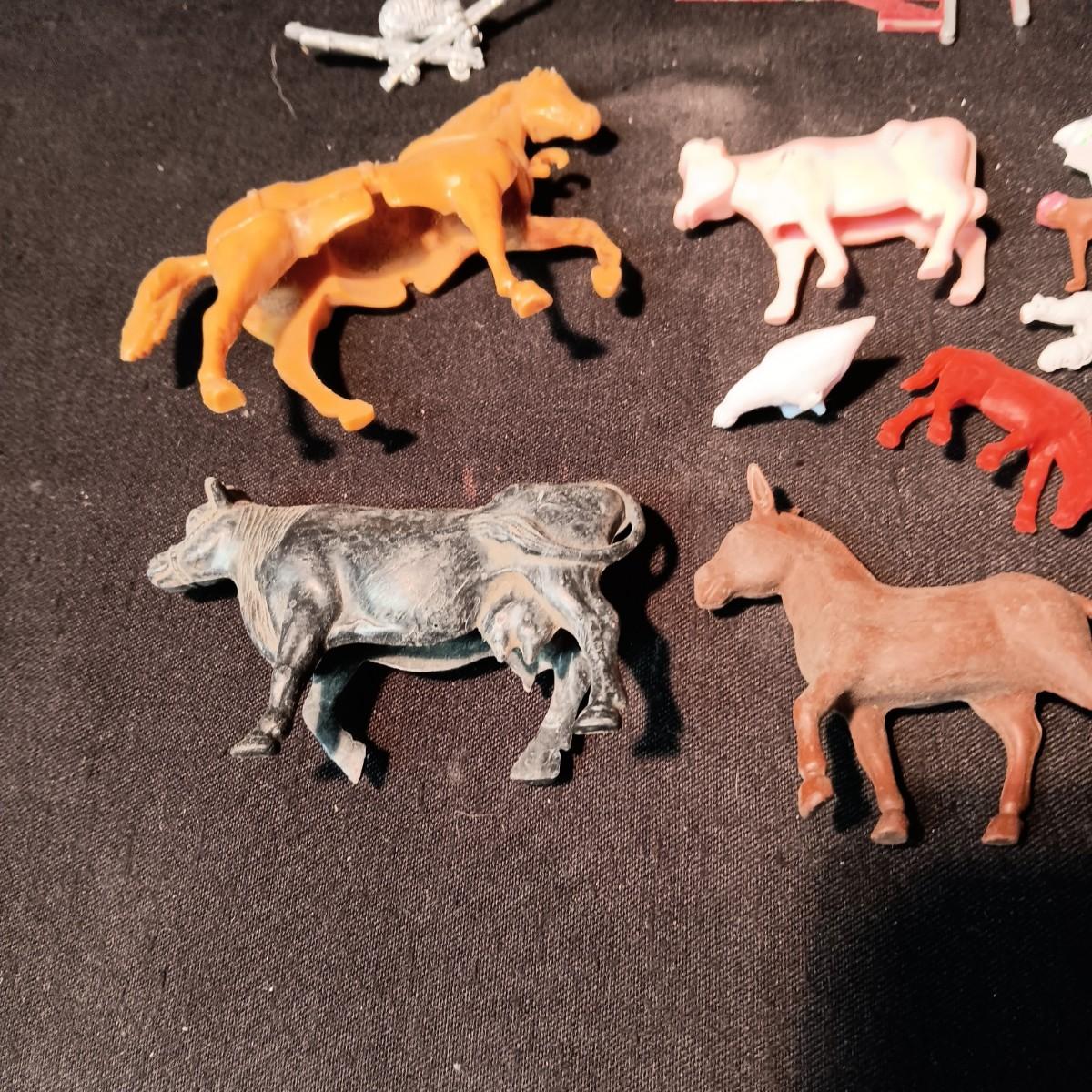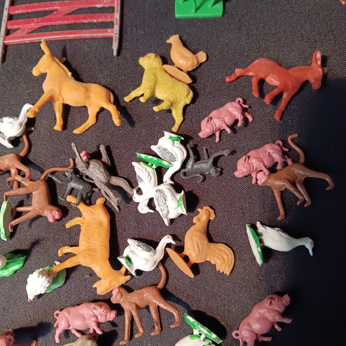PLASTIC TOY FARM ANIMALS AND METAL FENCING