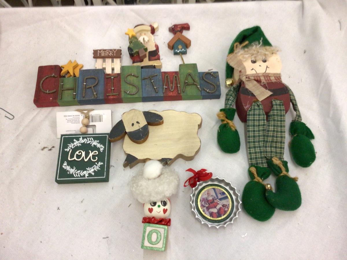 You get lots of Christmas decor. Santa, angles, wood signs, and wood Santa sign.