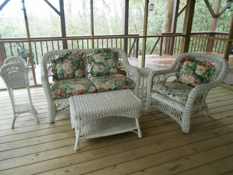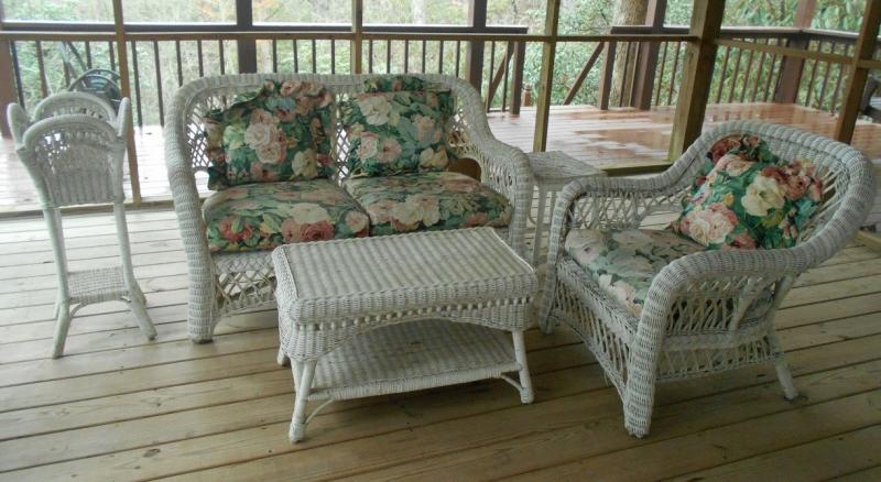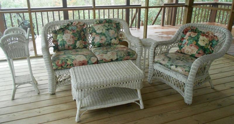 Wood Wicker Furniture Set Loveseat, Chair, Coffee Table, Plant Stand