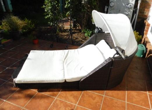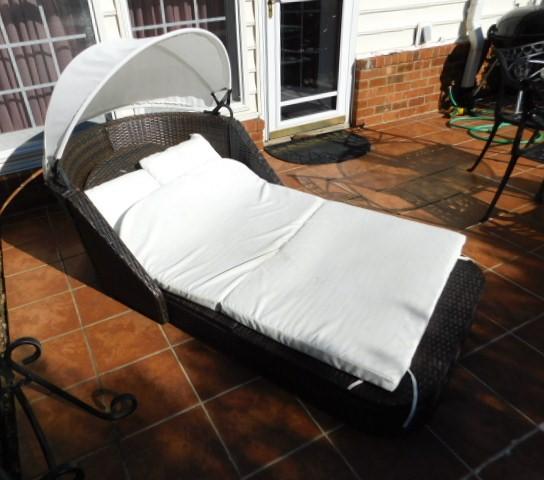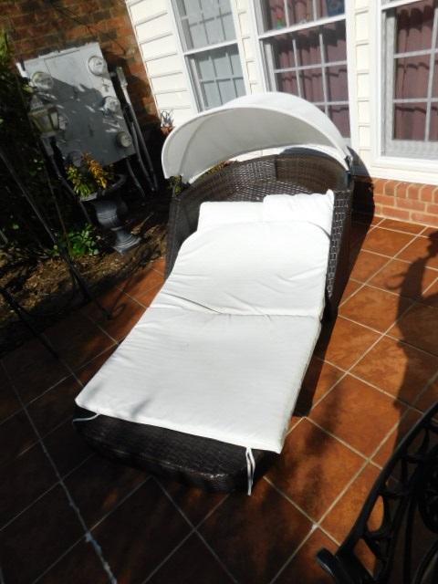 Plastic Wicker Ground Level Lounger with Retractable Sun Shade and Cushion 78"