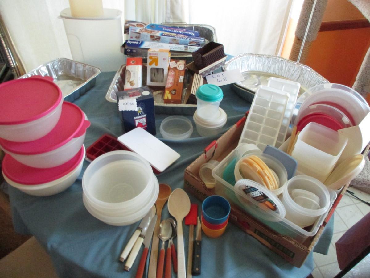 Foil pans, paper bake pans, utensils, ice trays, cereal container etc