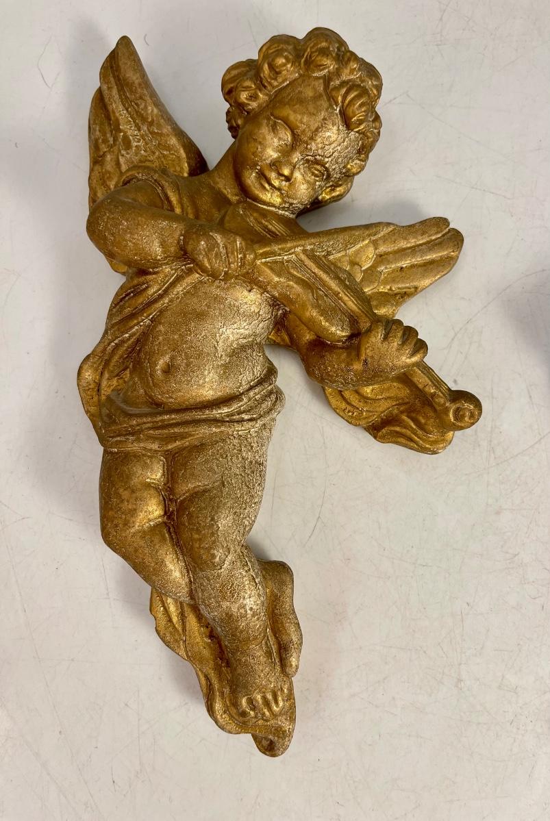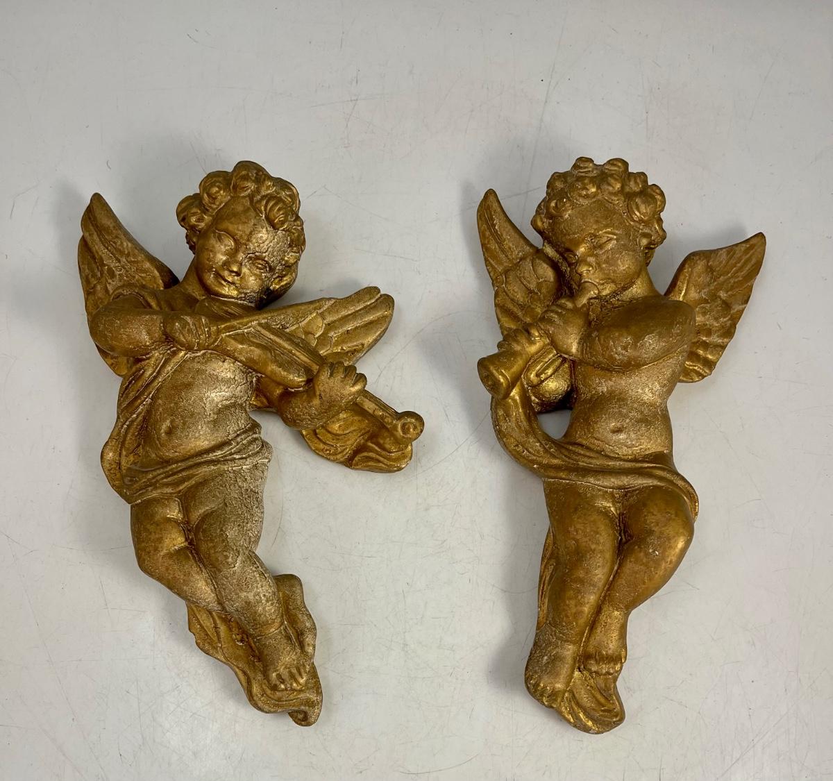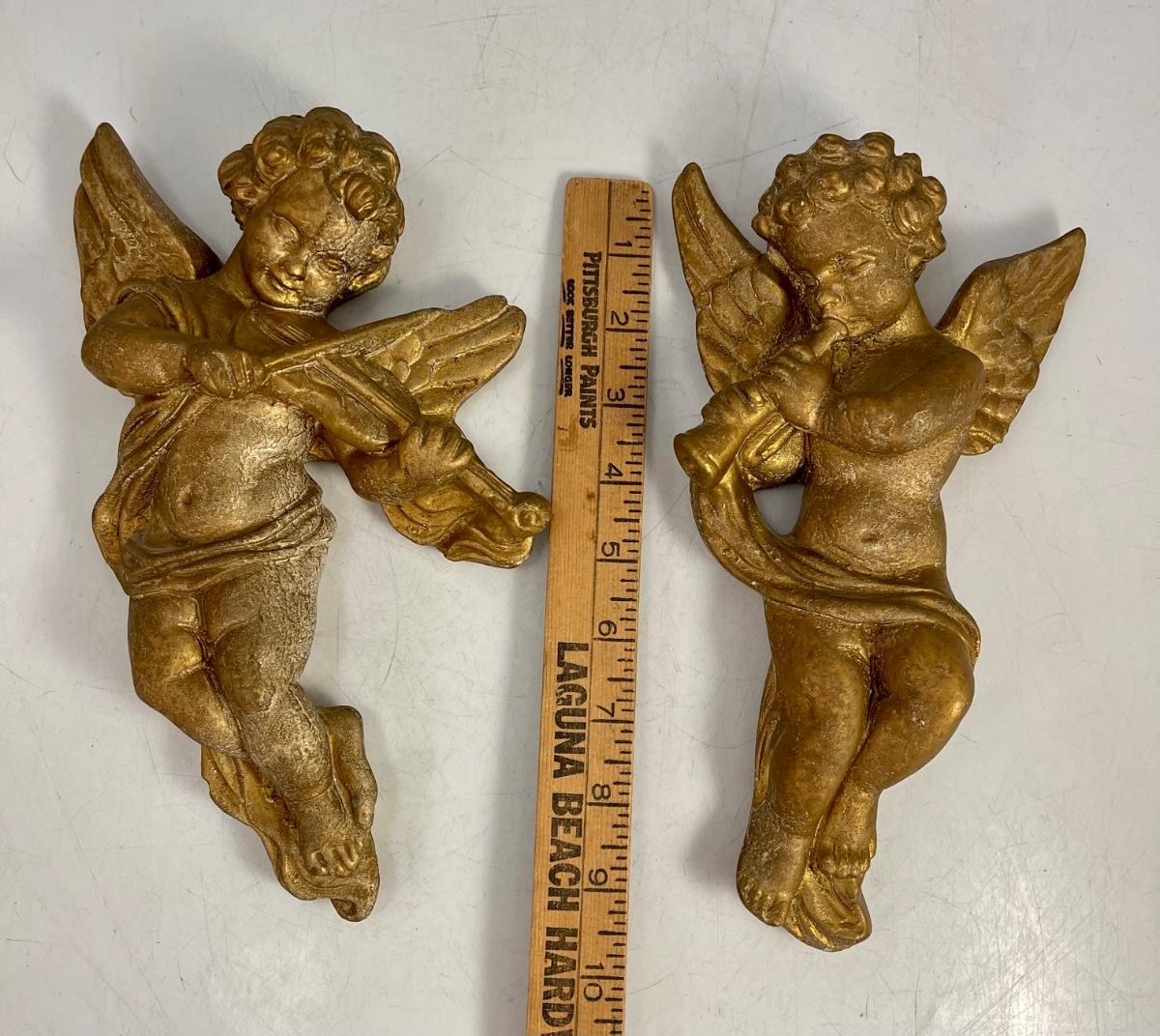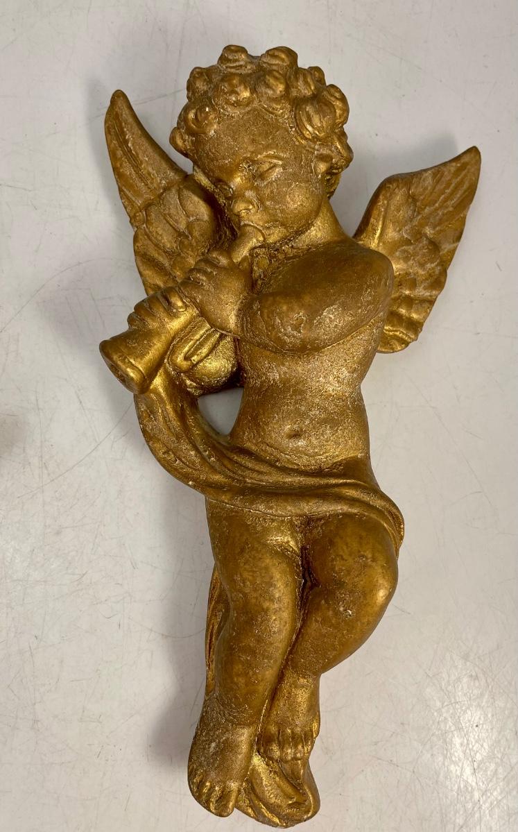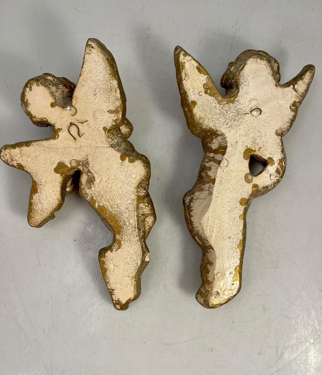 Pair of Gold Painted Plaster Wall Hanging Angel Cherub Figures