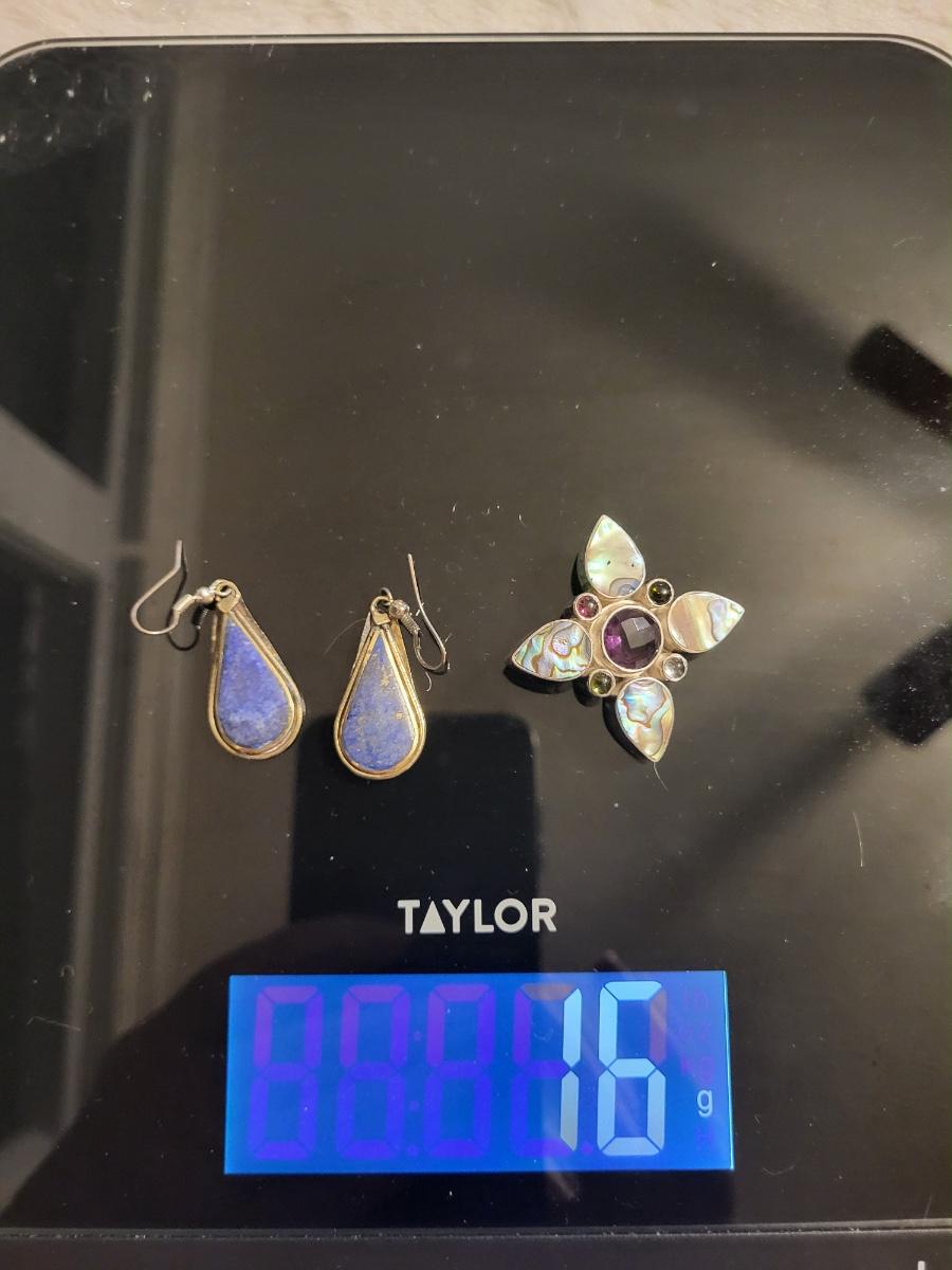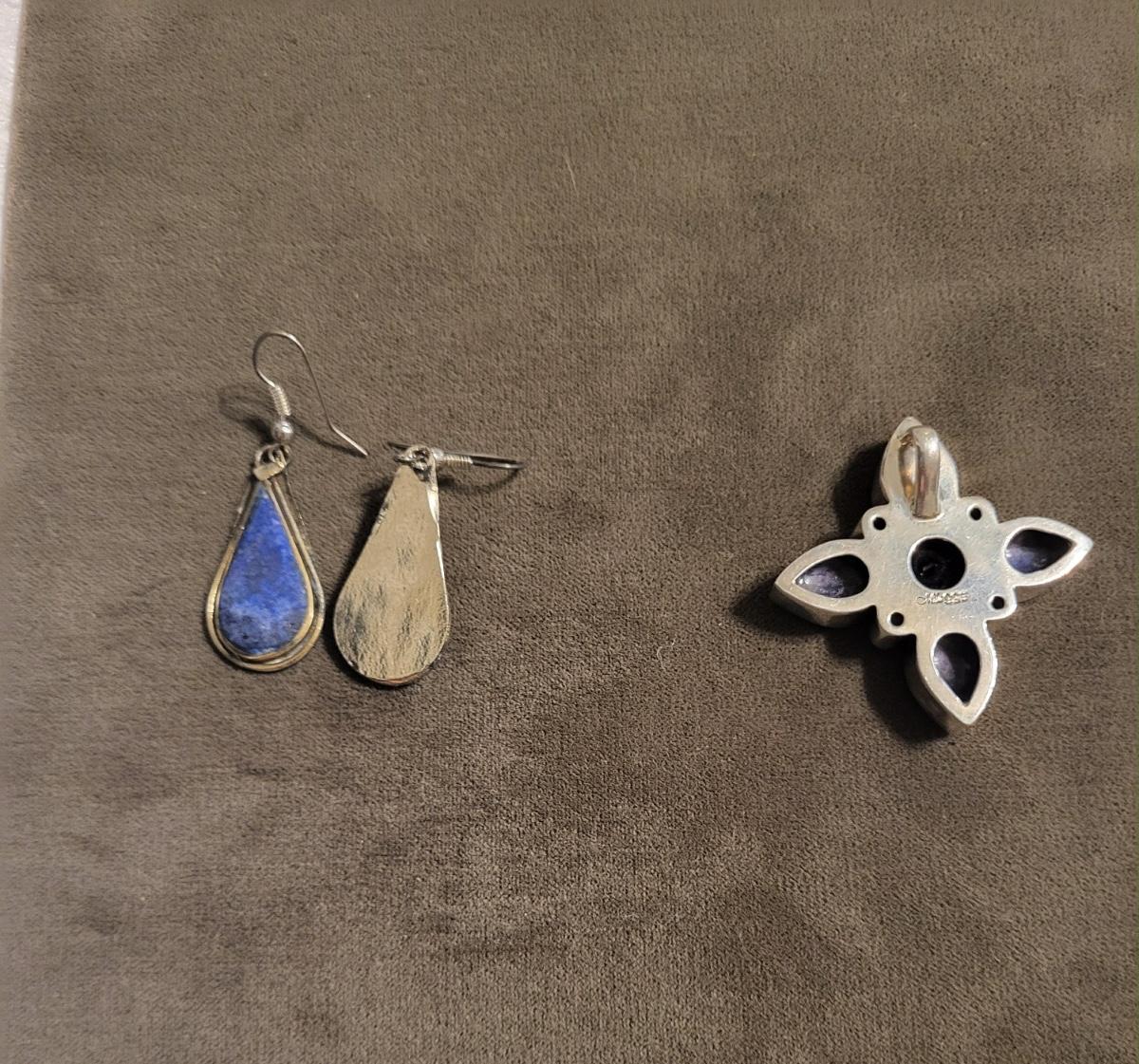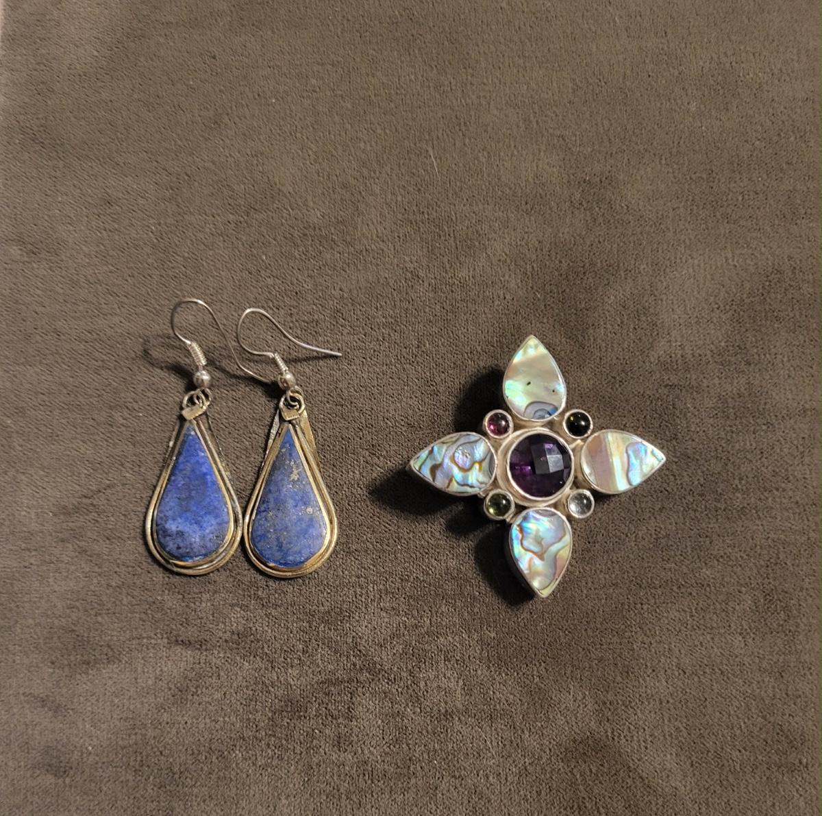 925 lapis earrings, Sajen Abalone Paua shell and Amethyst pendant. 16 g.