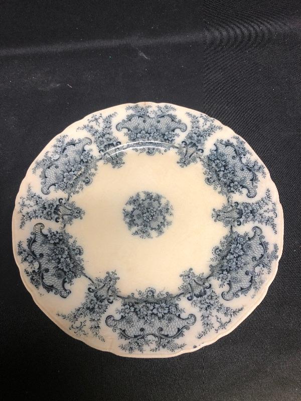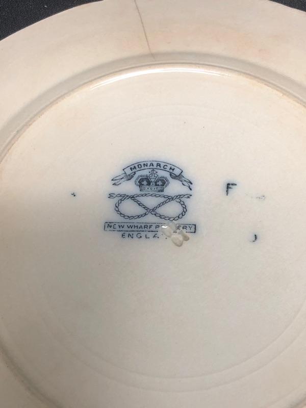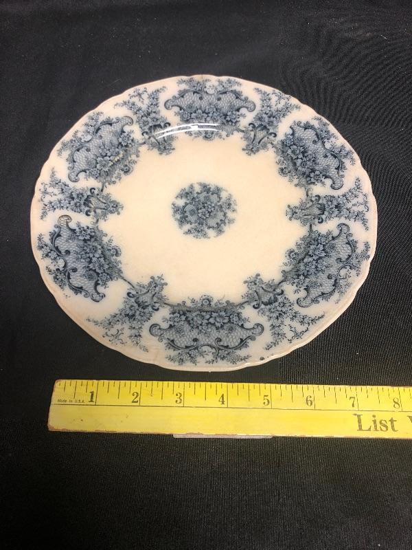 New Wharf Pottery Luncheon Plate. Almost 9" plate. Flow Blue "Monarch" pattern.