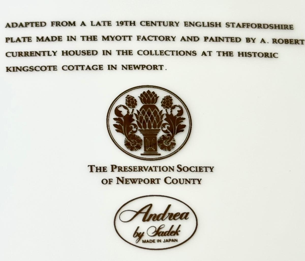 Reproduced by Andrea by Sadek. Adapted from a late 19th century English Staffordshire plate made in the Myott Factory and painted by A. Robert. Part of the Preservation Society of Newport County Collection.