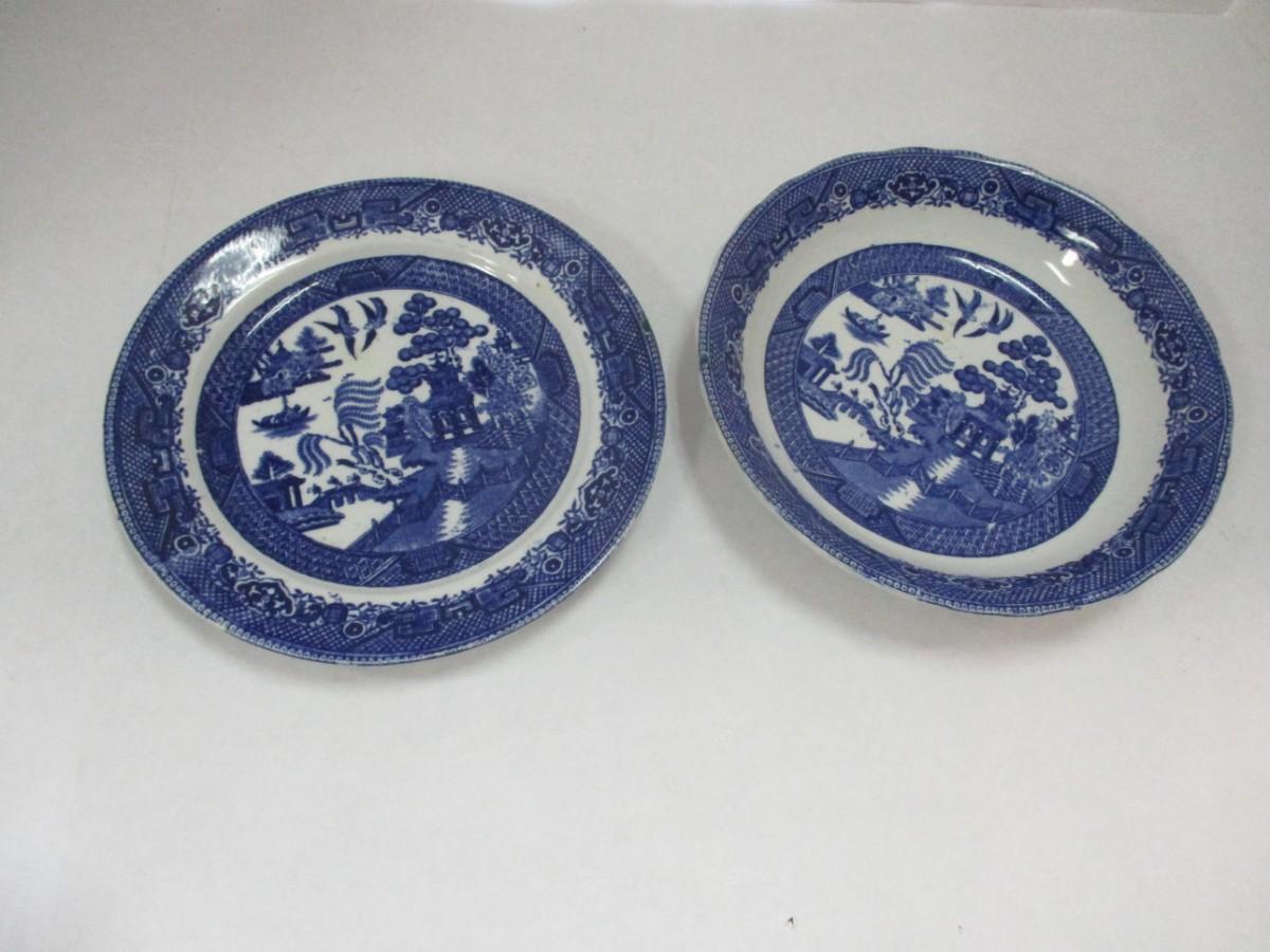 Plate & Bowl Warranted Antique Staffordshire Wm Adams & Co. Tunstall England Blue Willow