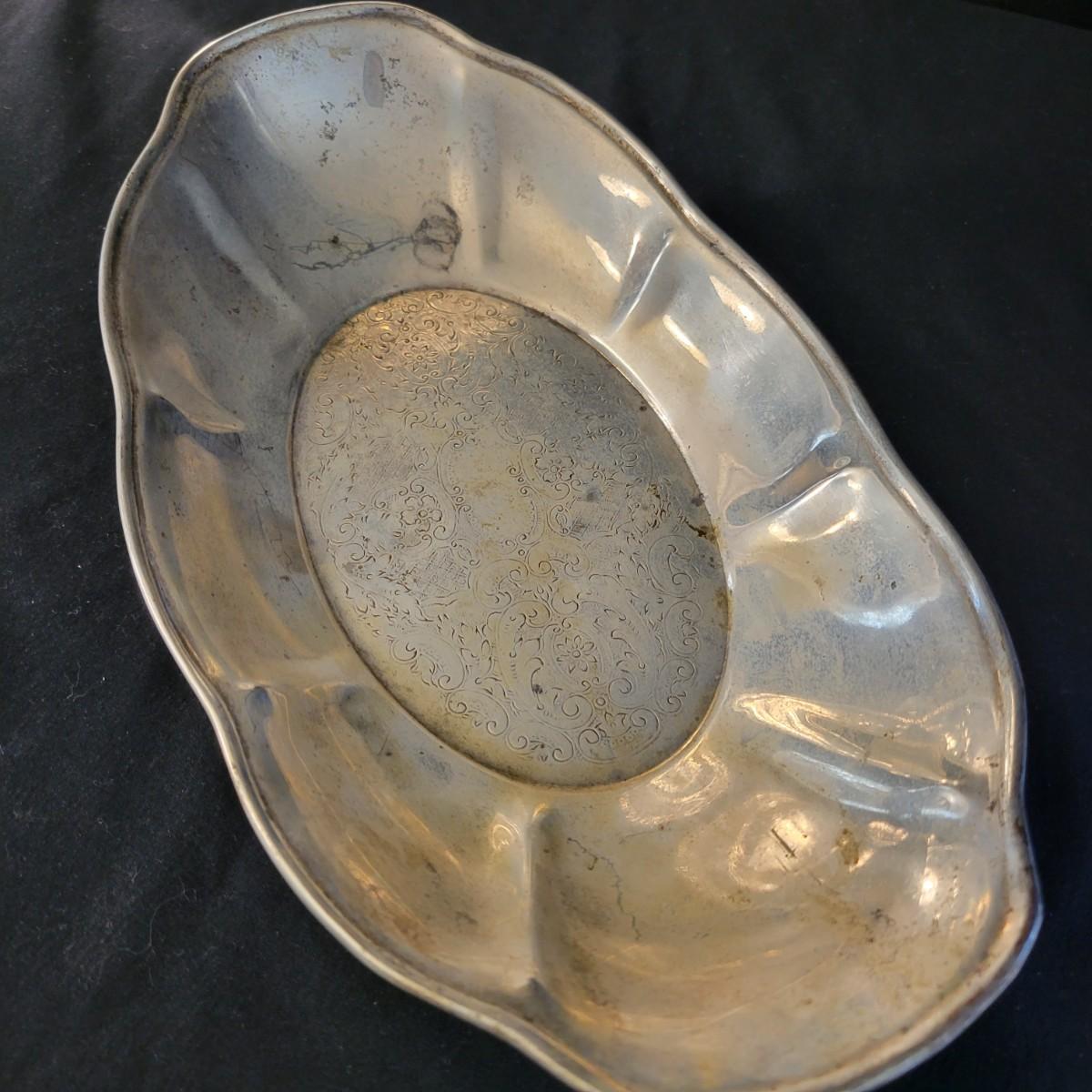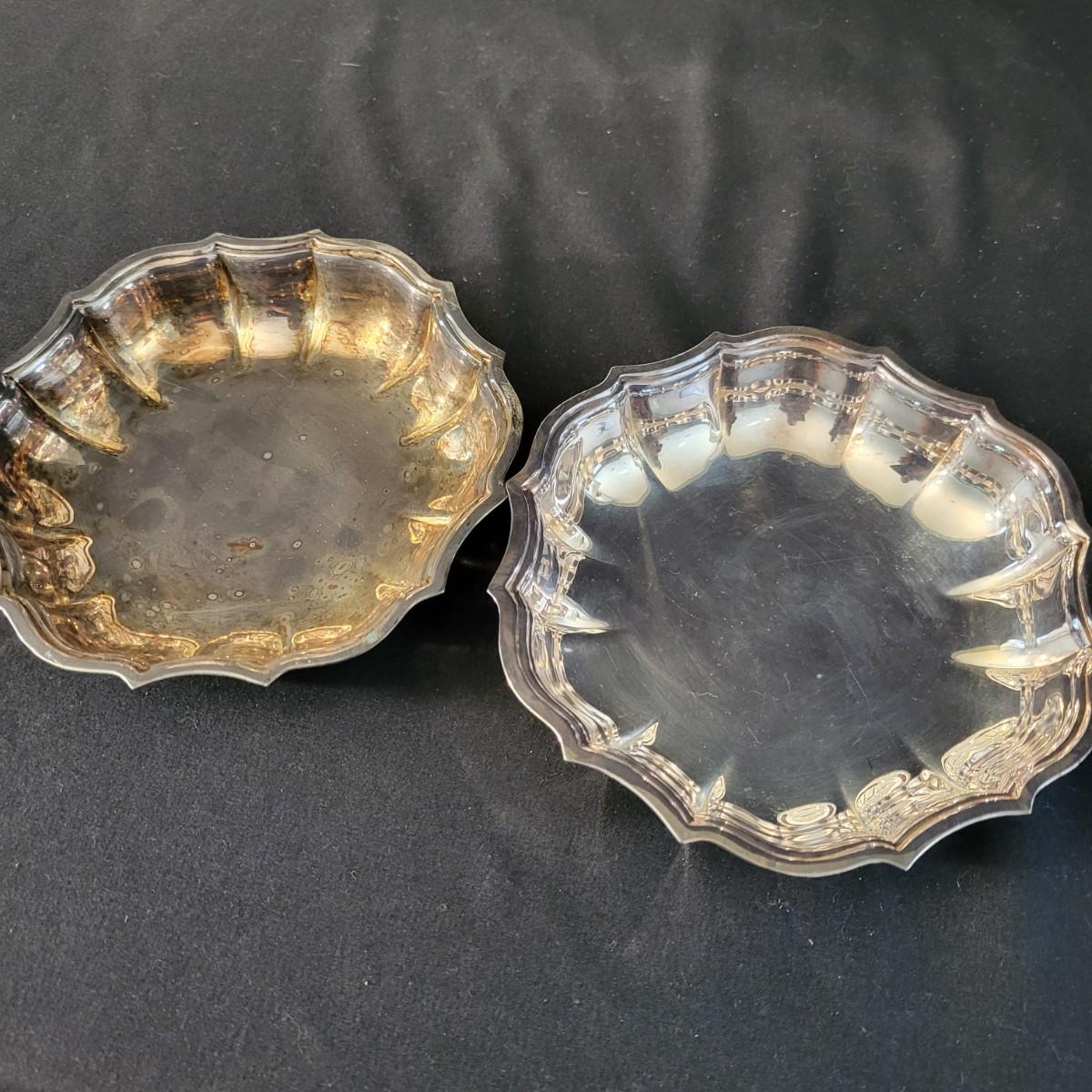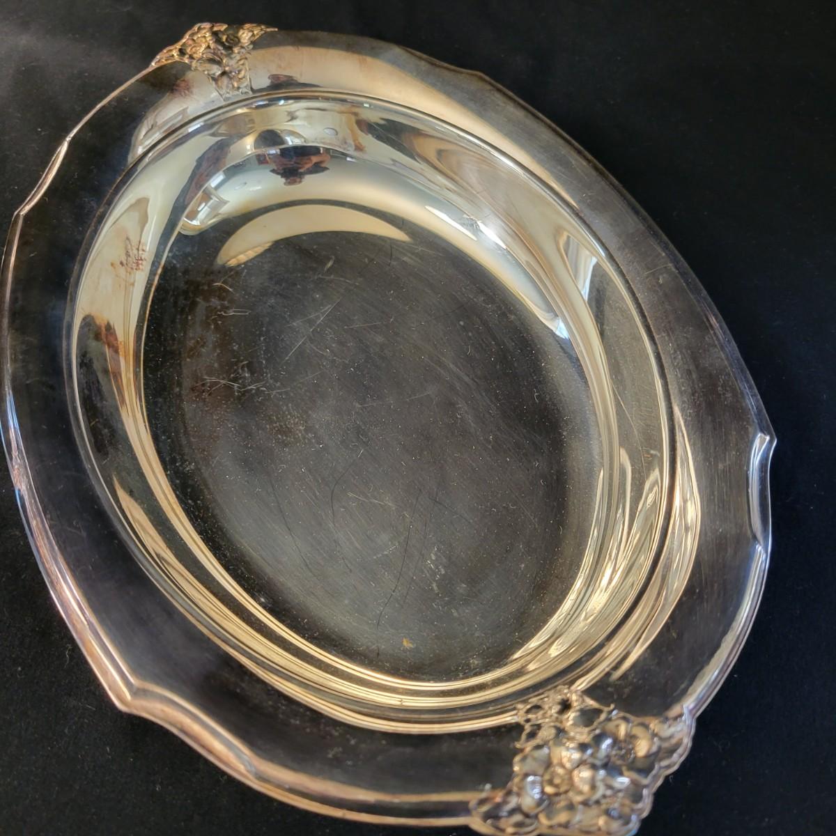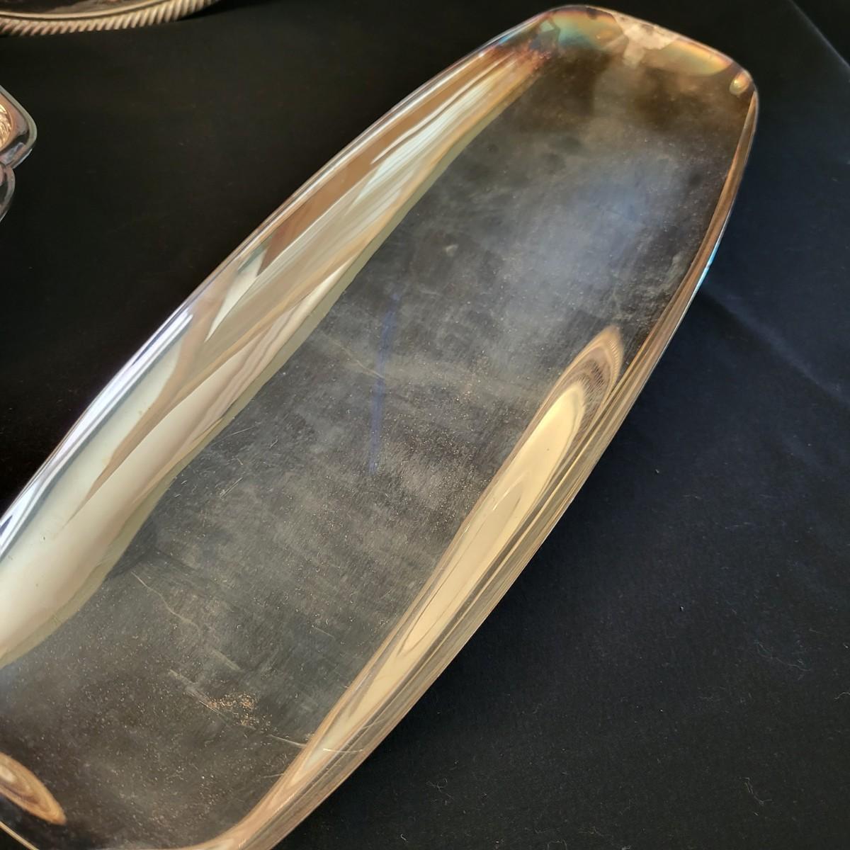 An assortment of fourteen plated silver platters, bowls and plates from a variety of manufacturers including Chippendale, WM Rogers, 1847 Rogers Bros and more. See attached pictures for full inventory and detail. Largest serving platter measures approximately 18" x 12.5" x 1.5"