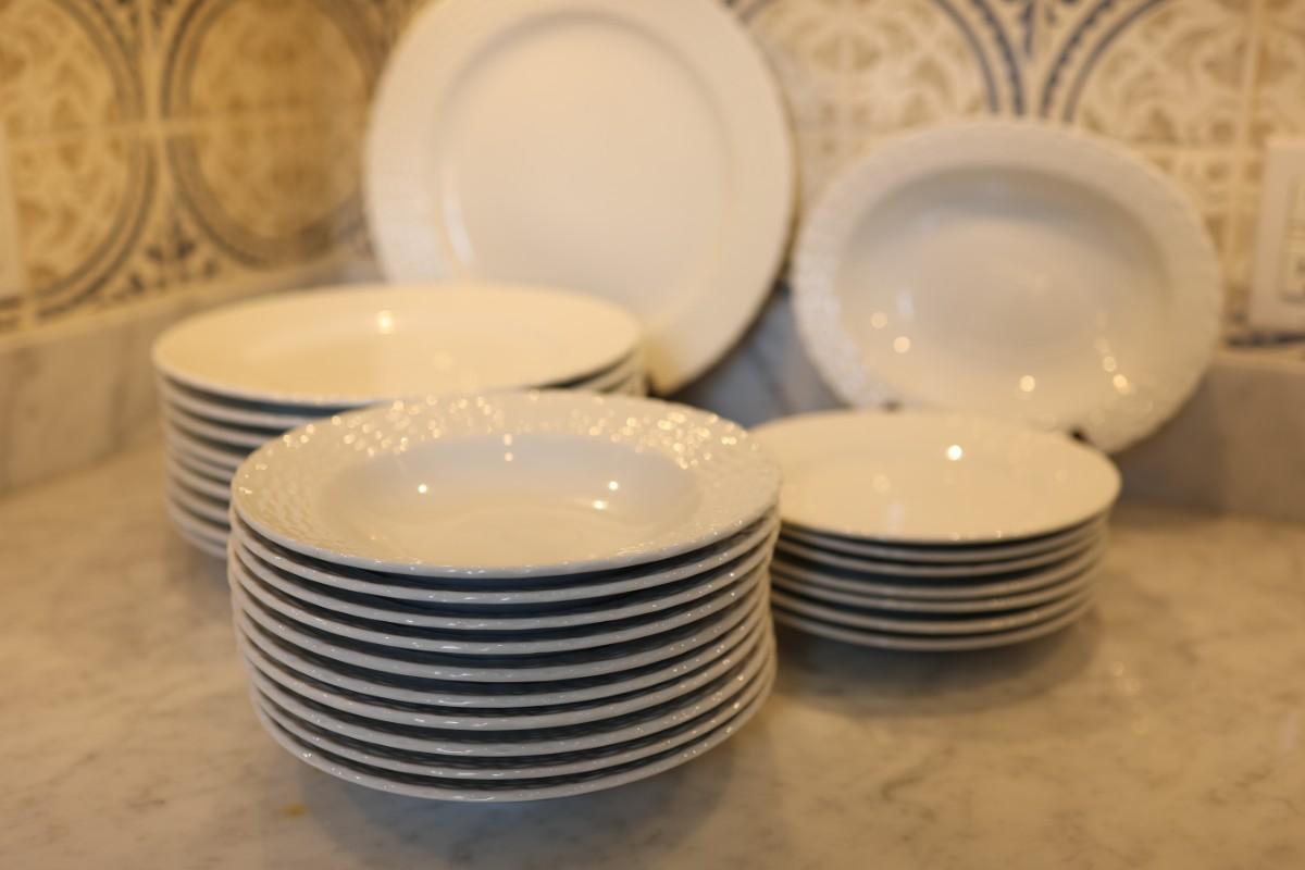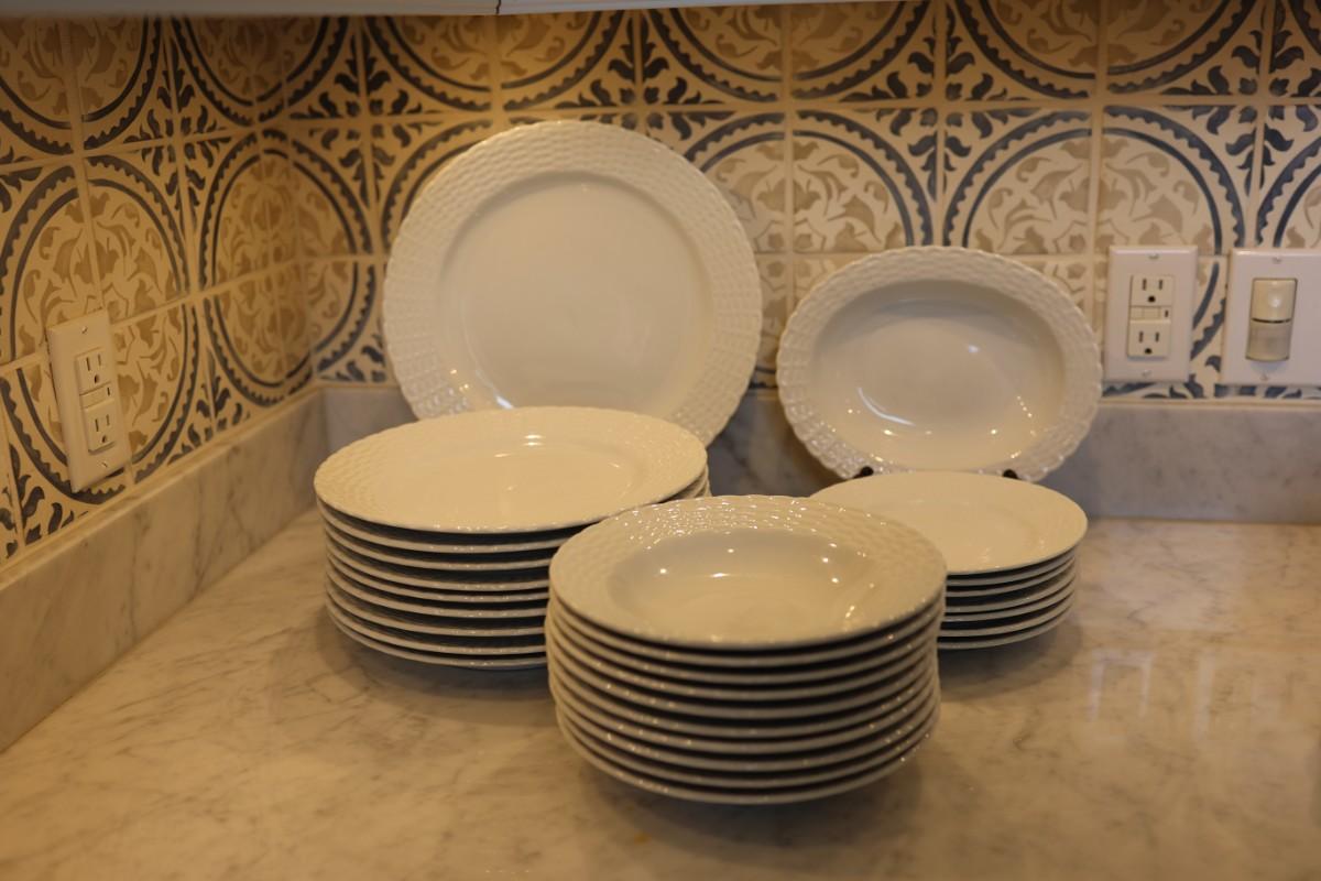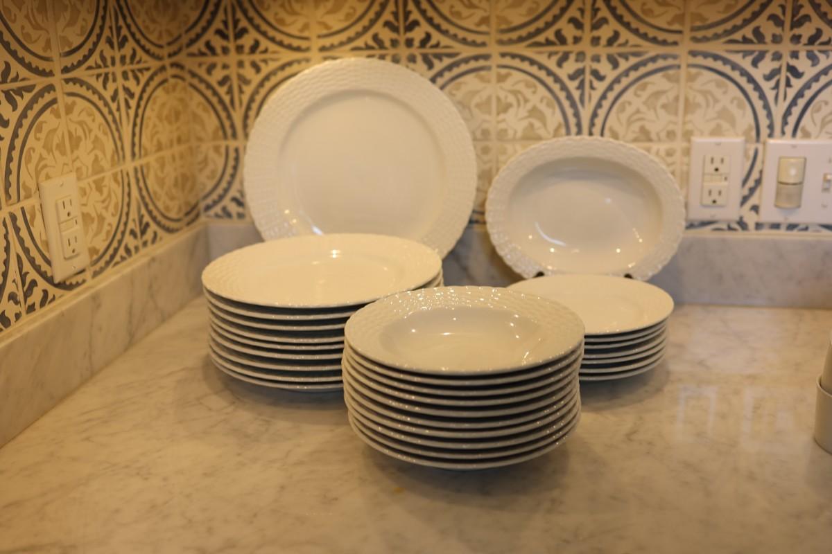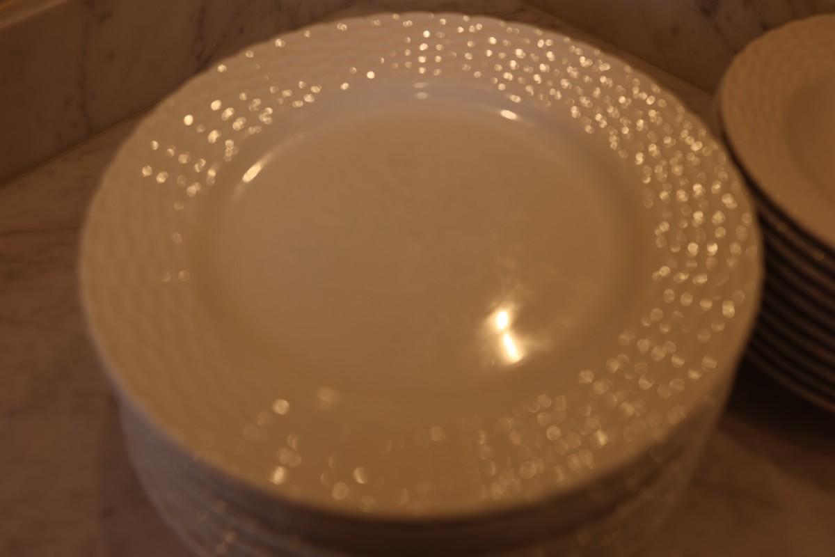The dinner plates have slight surface scratching from light use.