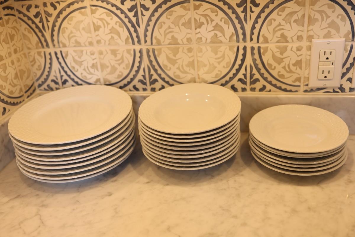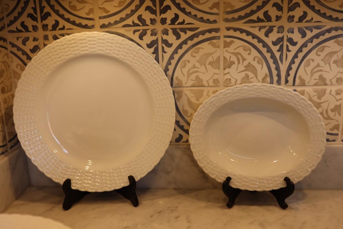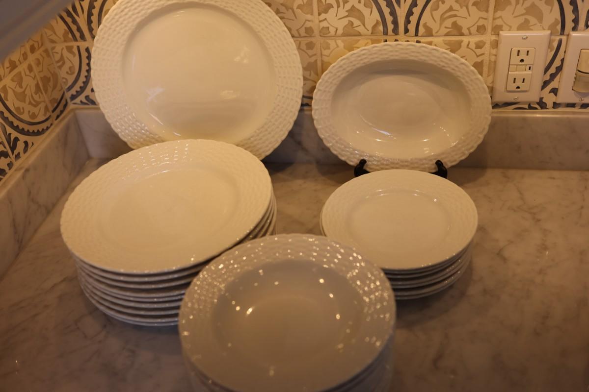 Tienshan White Wicker Porcelain Dinner Set