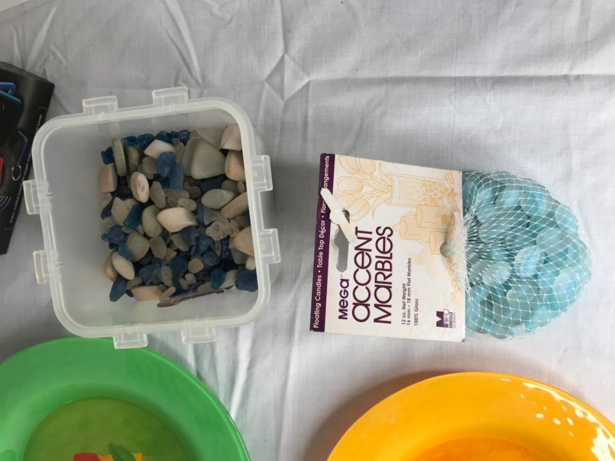 Teal colored glass pebbles and blues rocks and glass for arts and crafts with candles etc