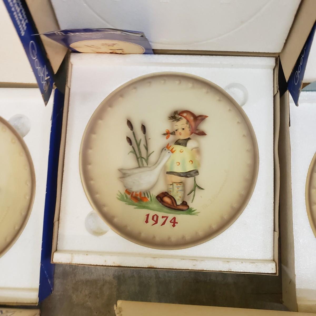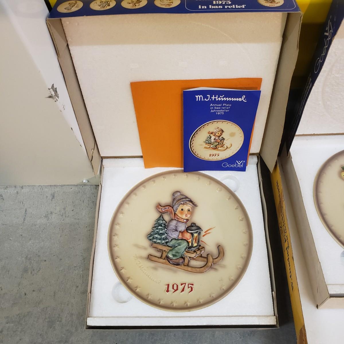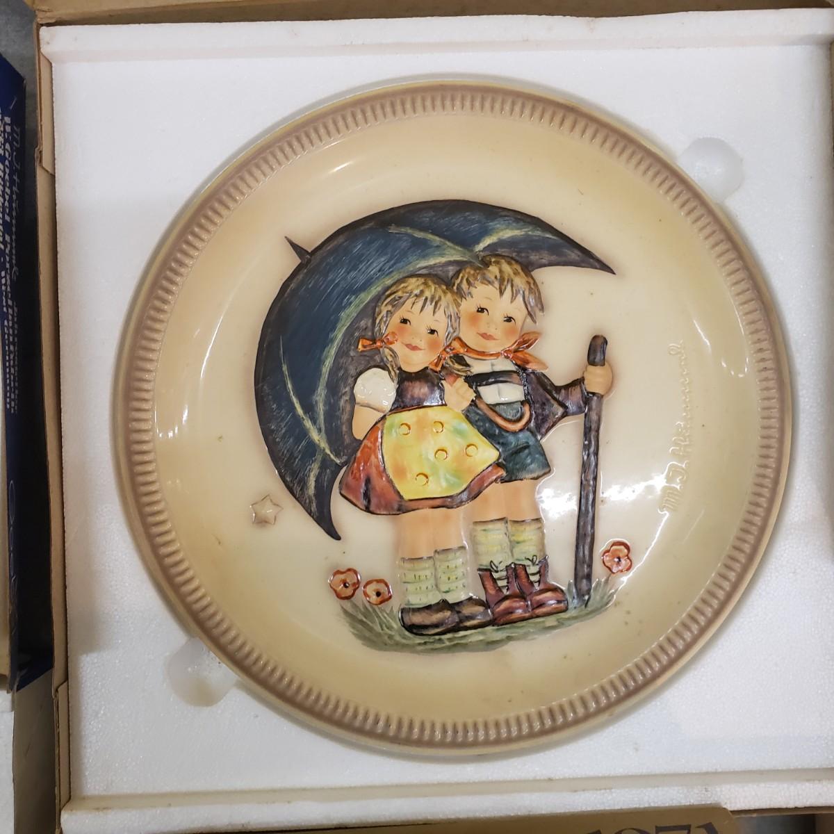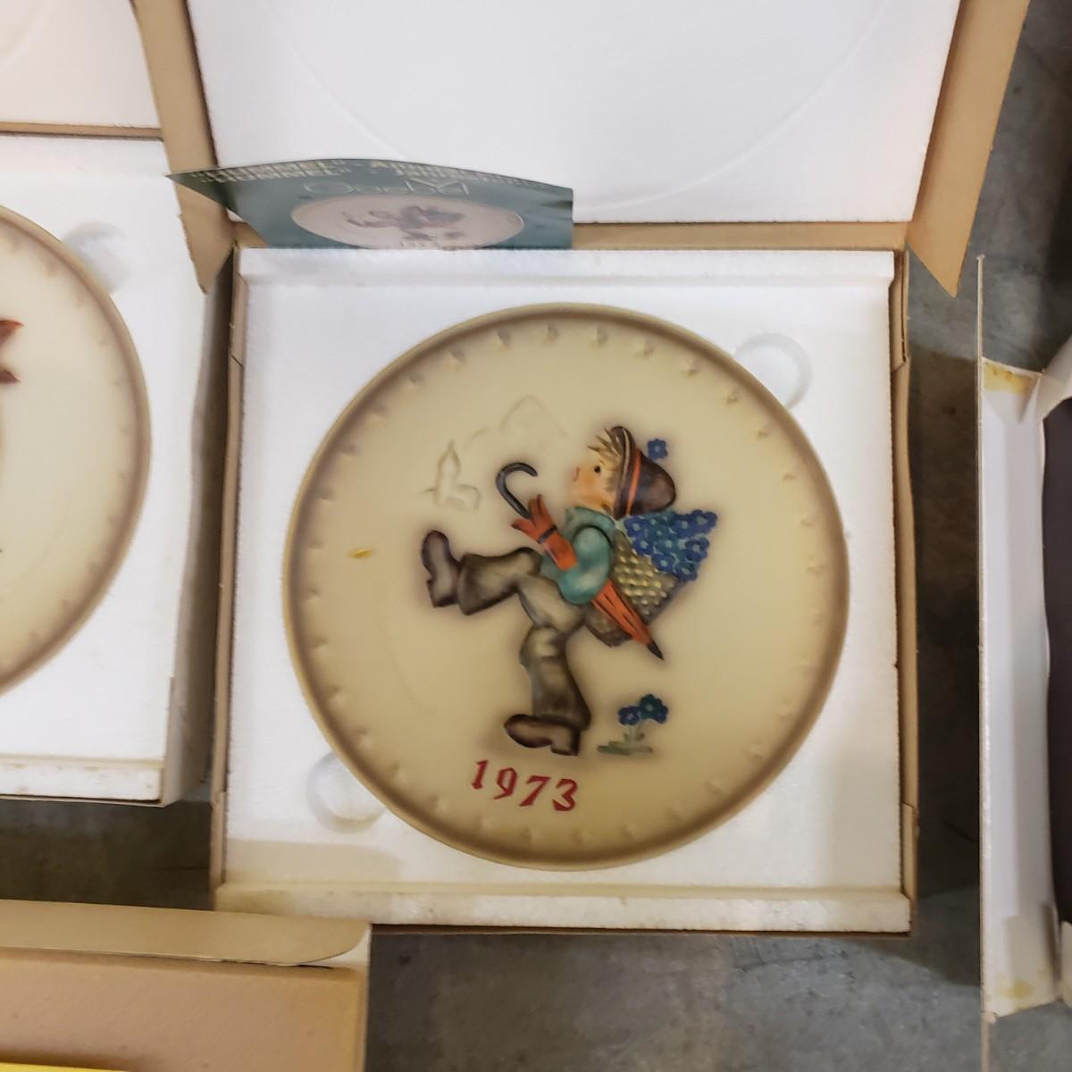 This lot contains 12 collectible Hummel Plates. They are all in their original boxes and have their papers inside the box. The plates are all from the 1970's-1980's. All the plates except one are 8 inches. The plates appear to be in excellent condition.