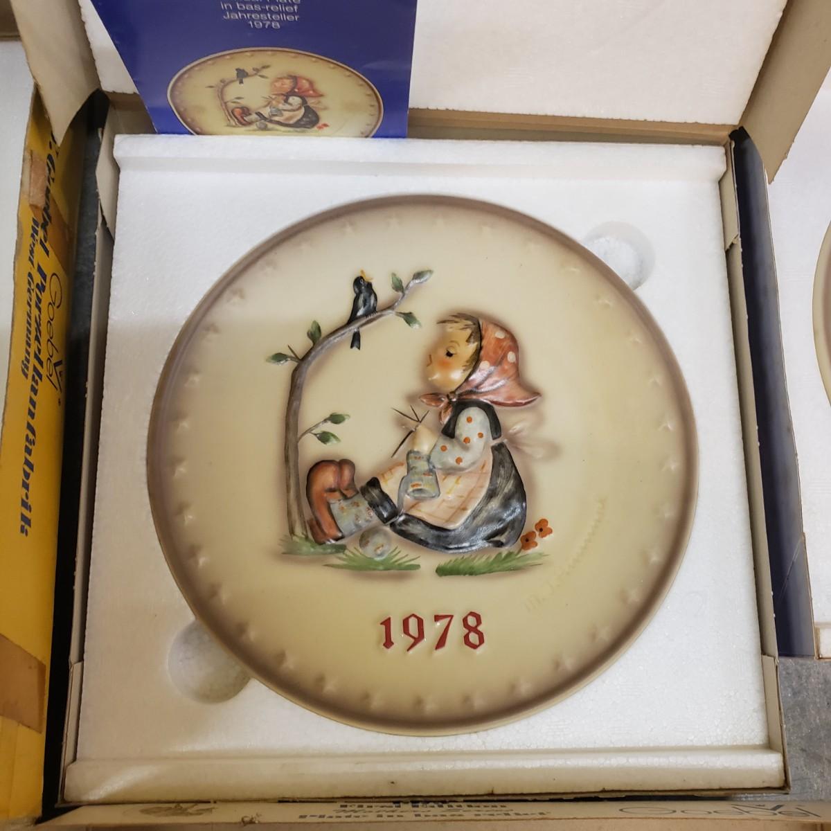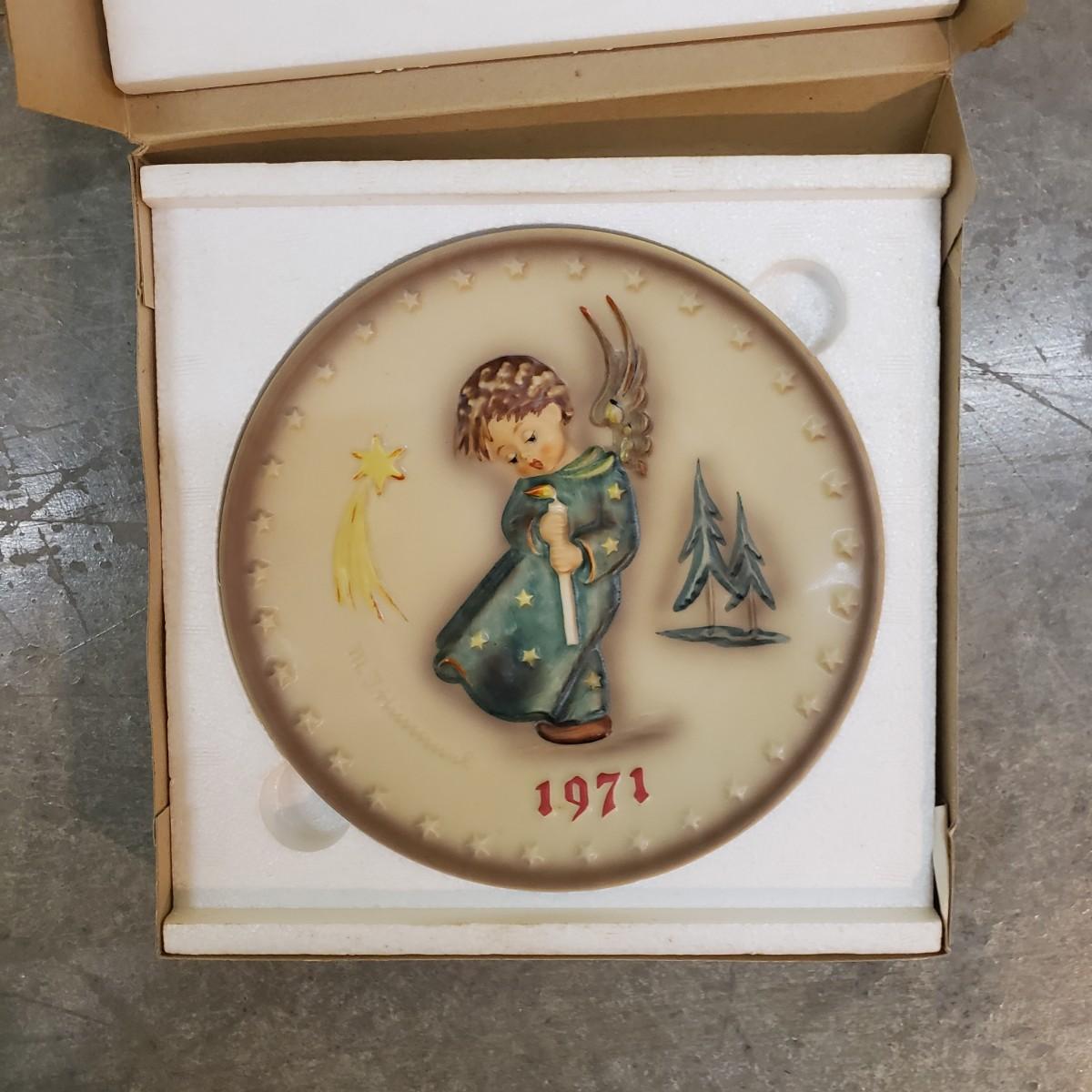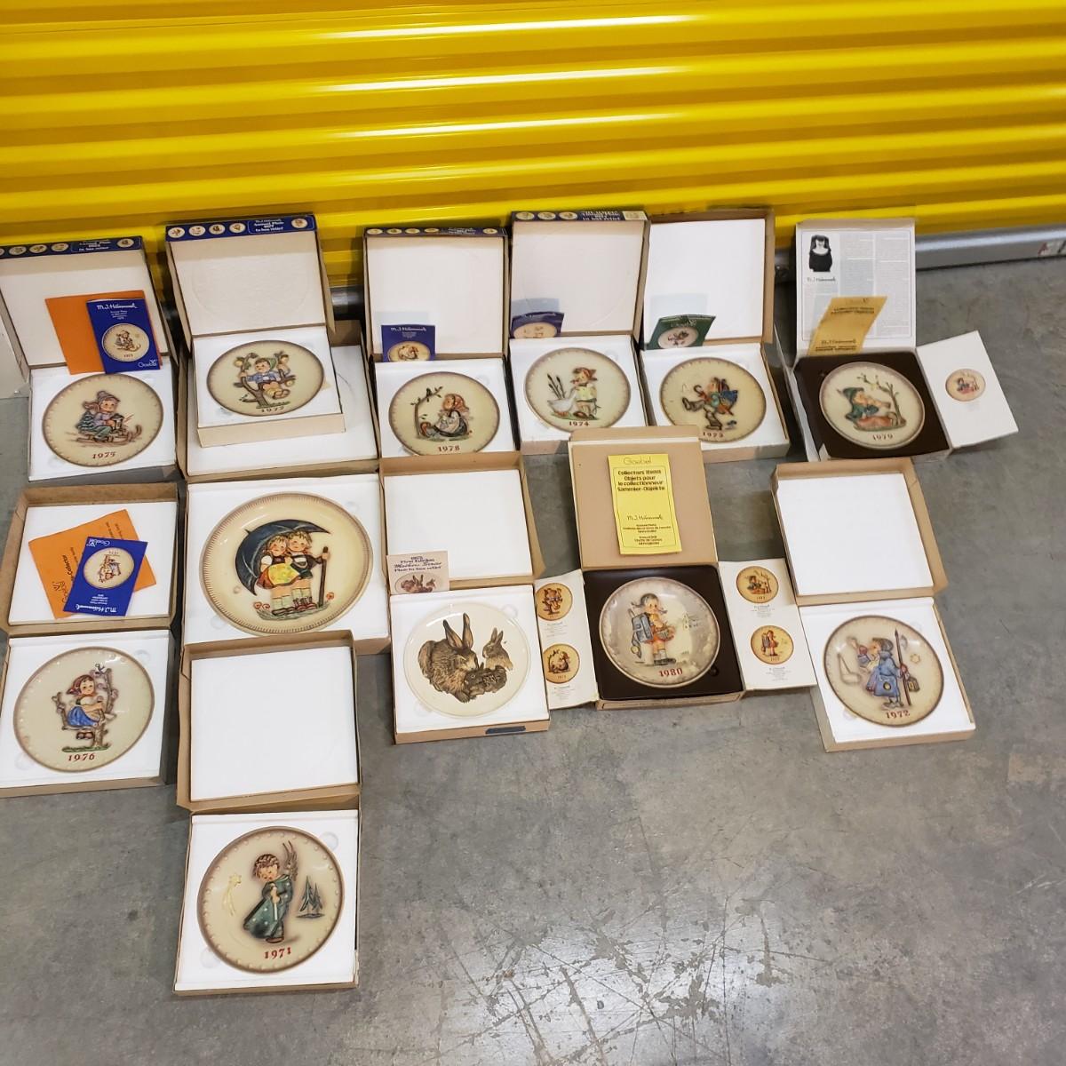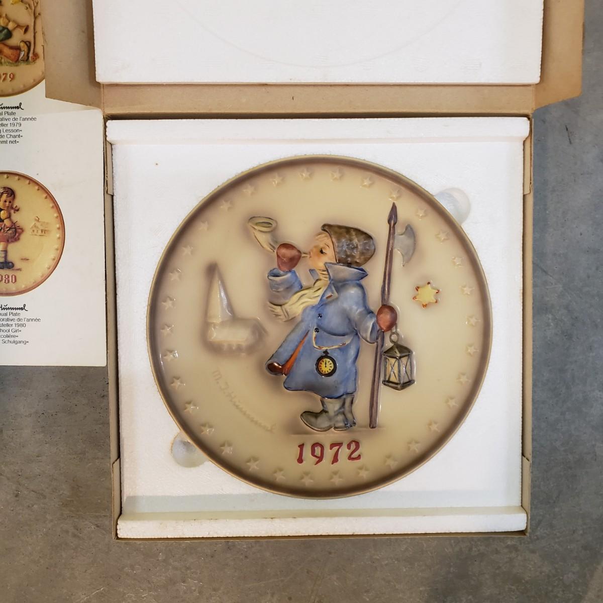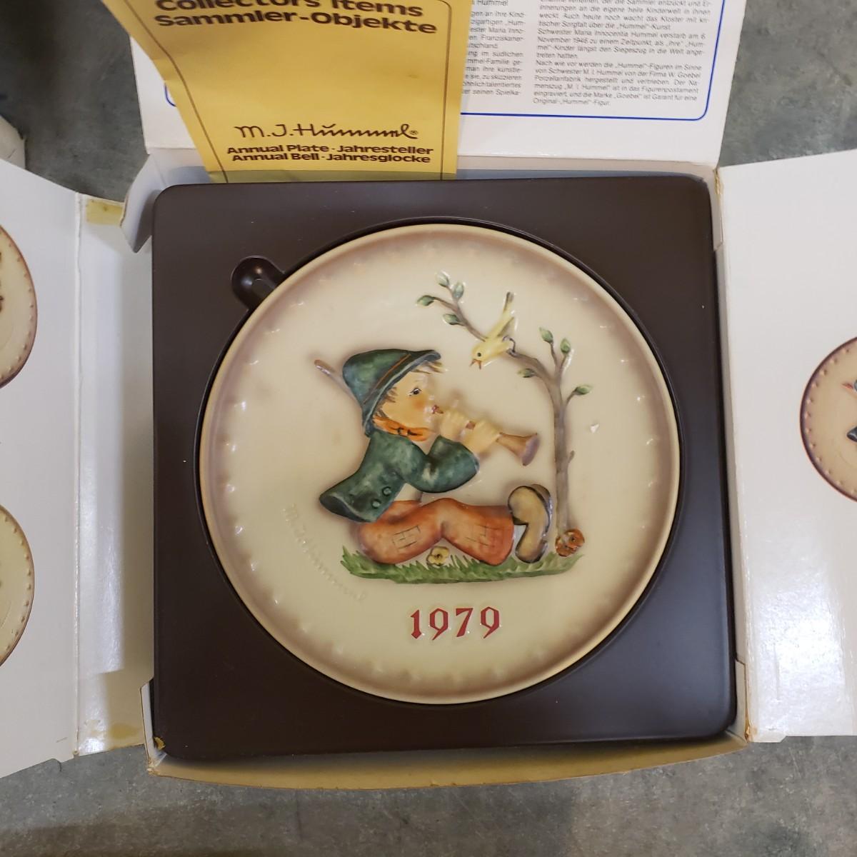 This lot contains 12 collectible Hummel Plates. They are all in their original boxes and have their papers inside the box. The plates are all from the 1970's-1980's. All the plates except one are 8 inches. The plates appear to be in excellent condition.