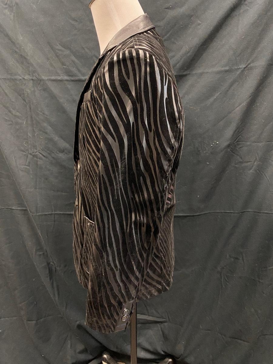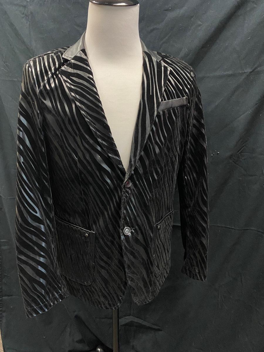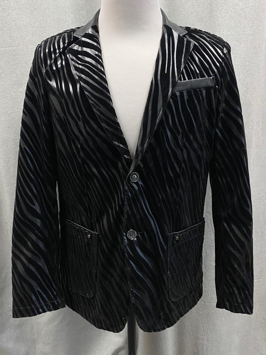 Platini Jeans Cougar Men's Black on Black Velvet Zebra Tiger Stripe Dinner Sports Coat Formal Jacket Large