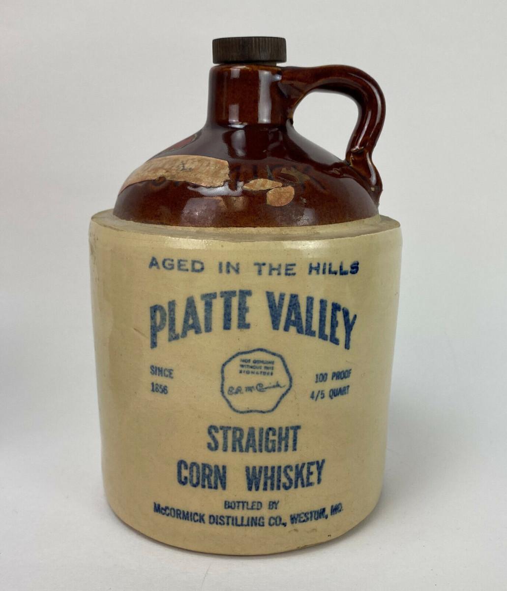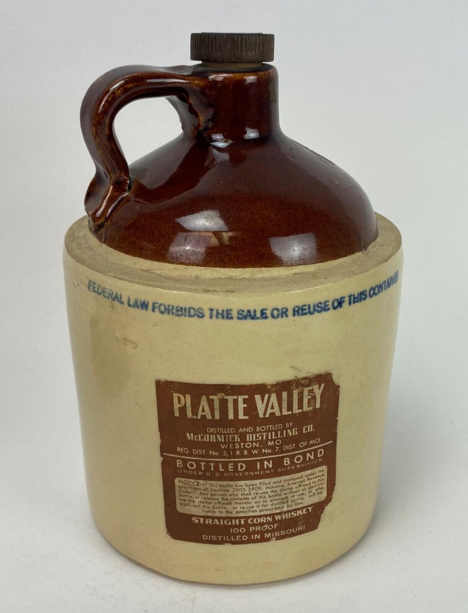 PLATTE VALLEY STRAIGHT CORN WHISKEY JUG McCORMICK DISTILLING tax stamp