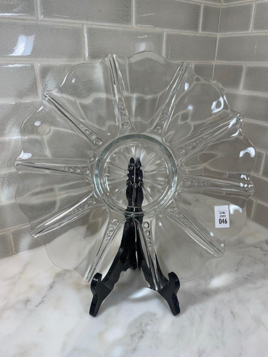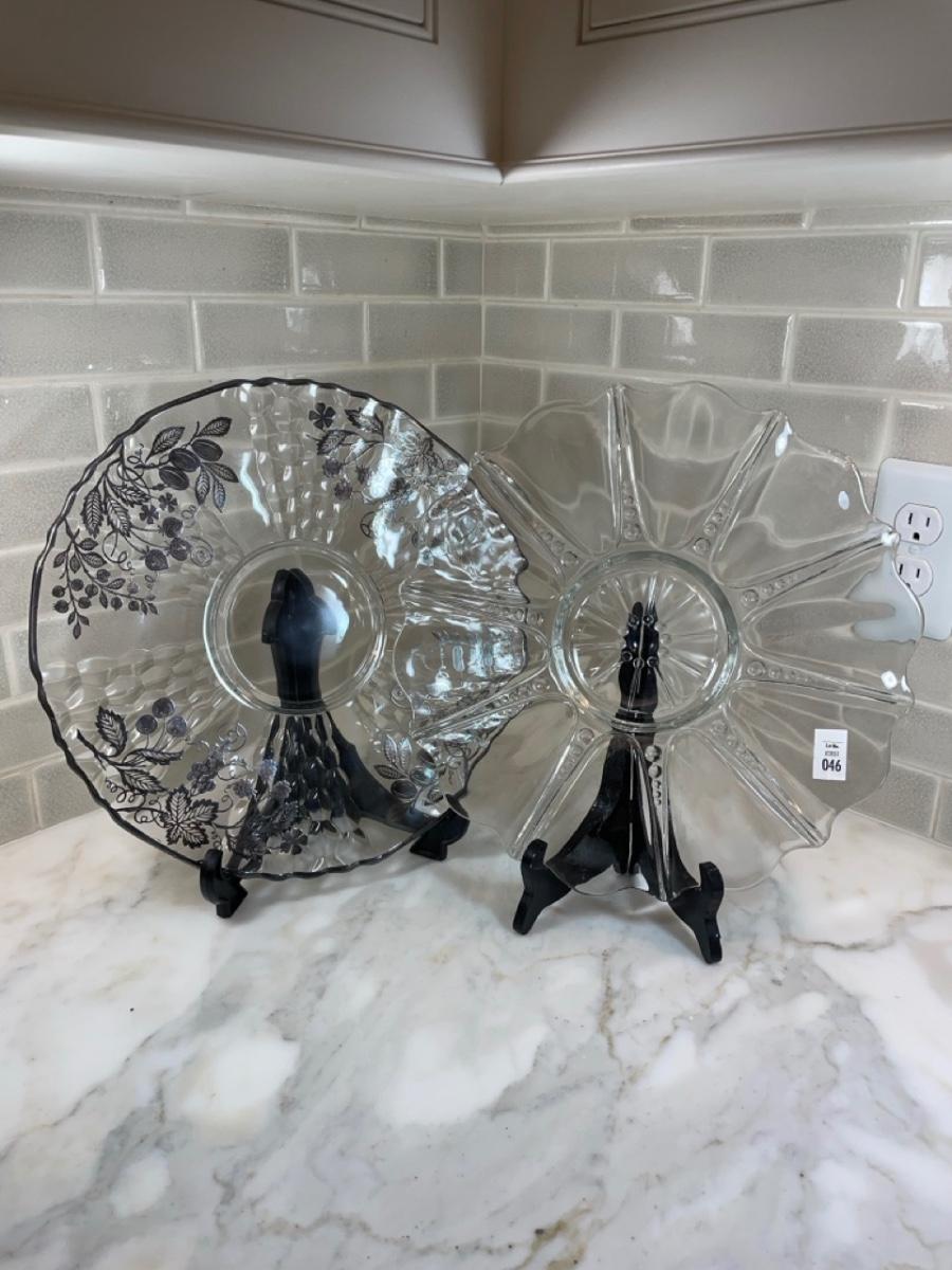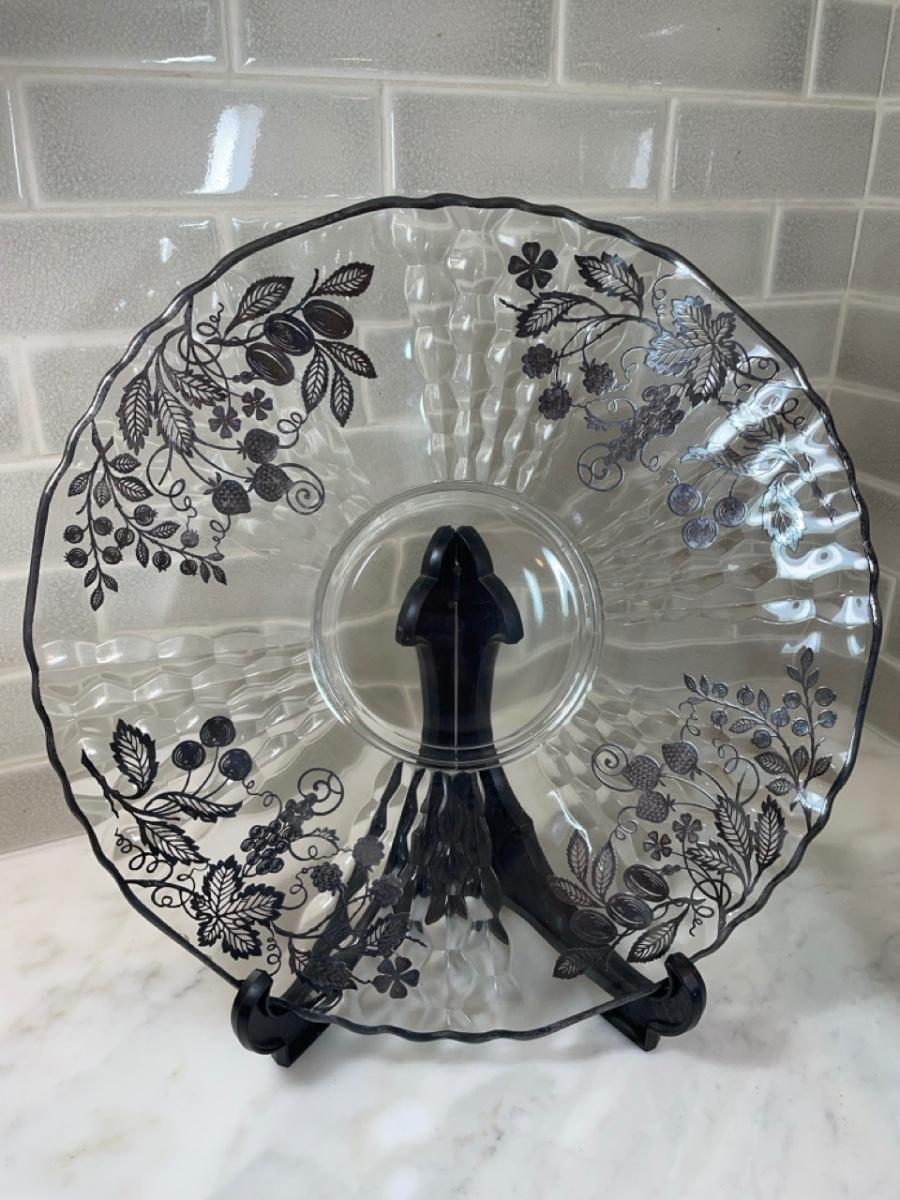 Glass with silver leaves/vines, Glass . Both 13 1/2 diameter